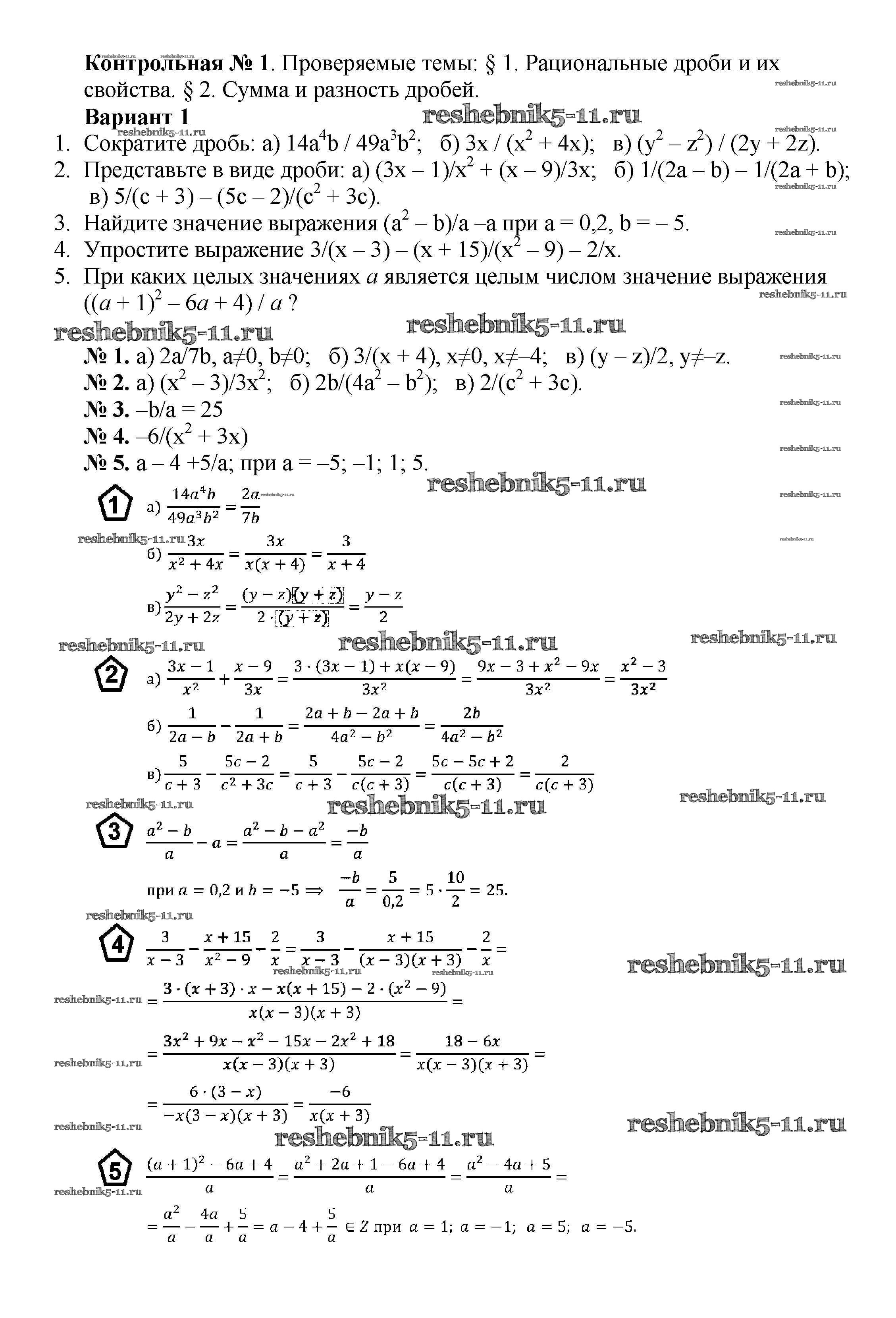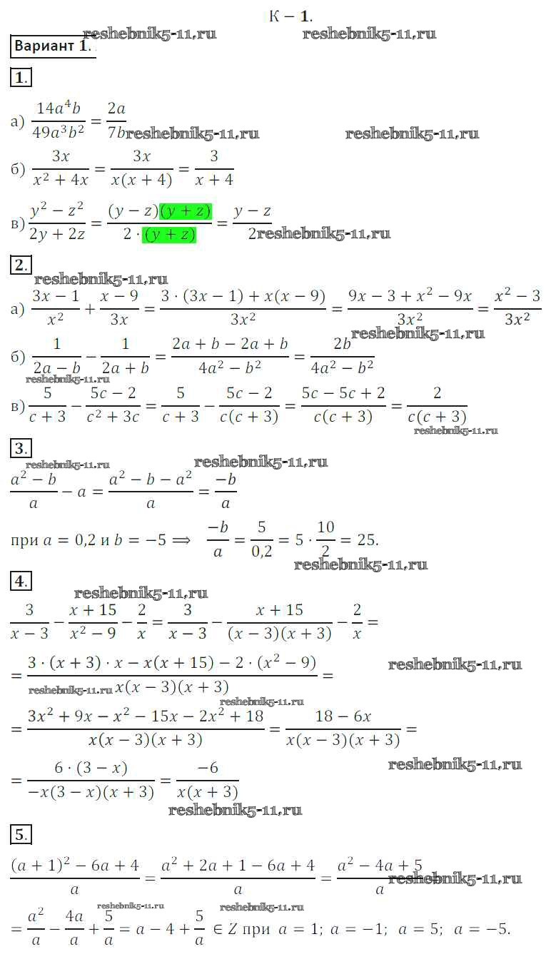 Готовая домашняя работа с ответами по Алгебре за 8 класс Жохов, Макарычев, Миндюк Дидактические материалы Просвещение 2014 ФГОС - КР №1 вариант 1