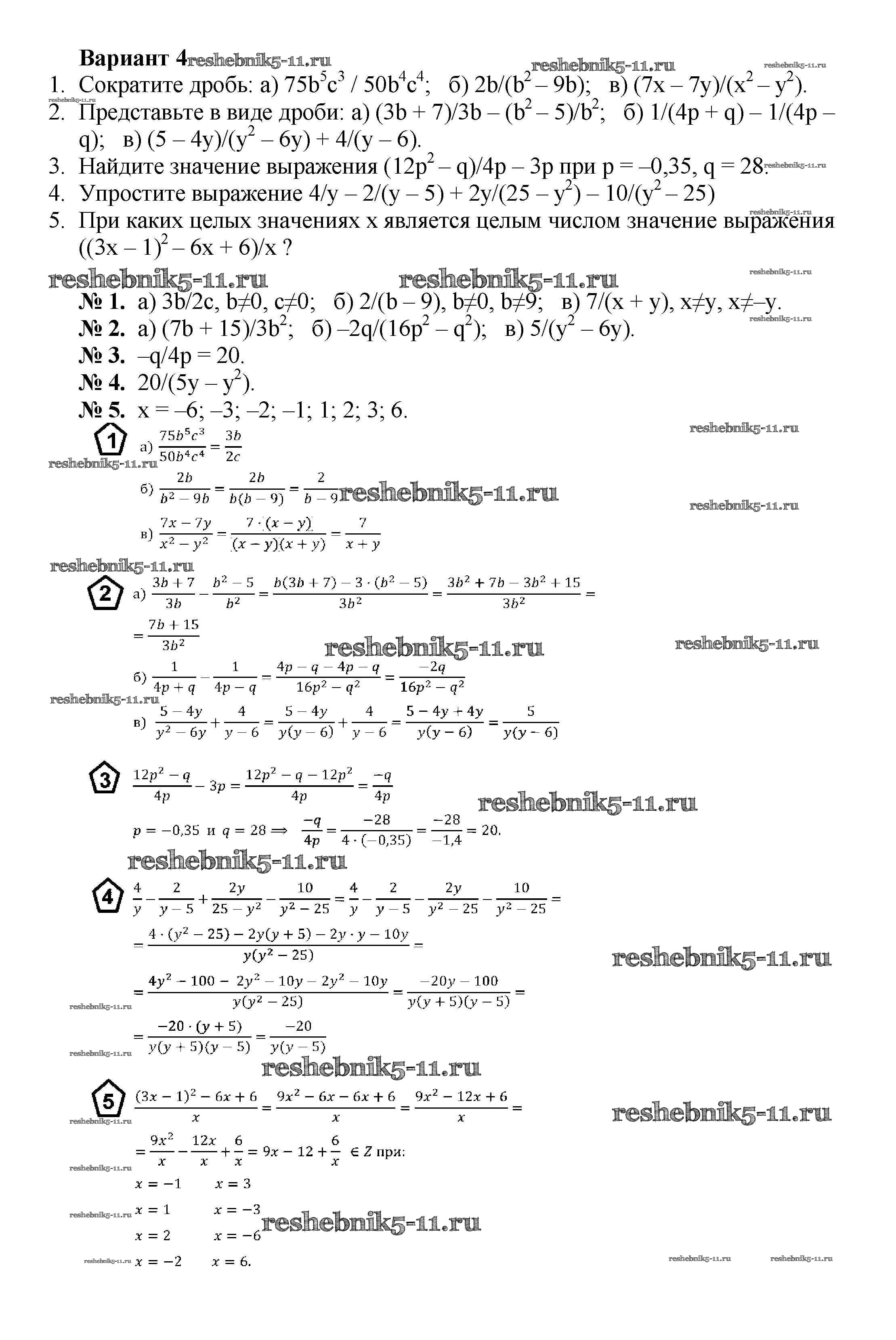 Готовая домашняя работа с ответами по Алгебре за 8 класс Жохов, Макарычев, Миндюк Дидактические материалы Просвещение 2014 ФГОС - КР №1 вариант 4