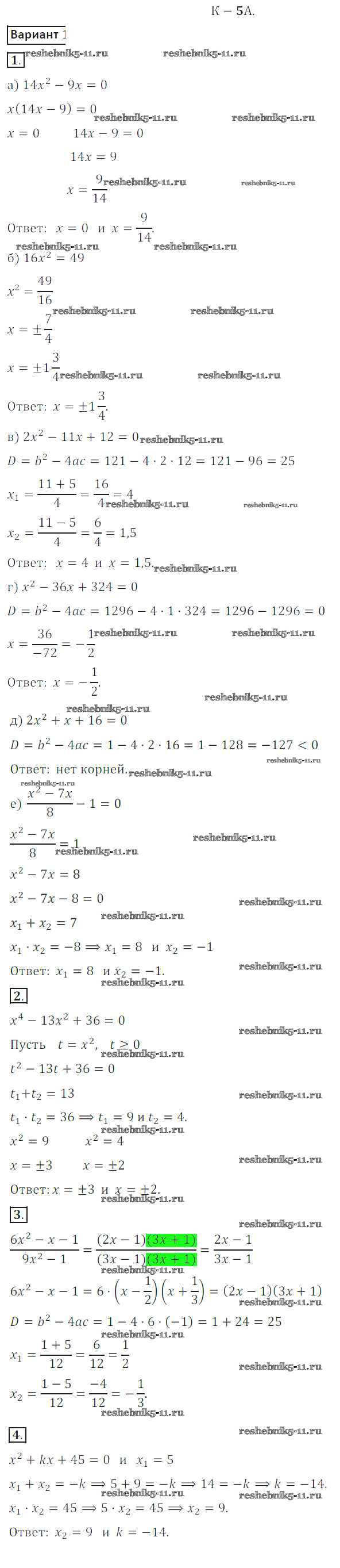 Решебник 1 / контрольная работа / кр №5A / вариант 1
