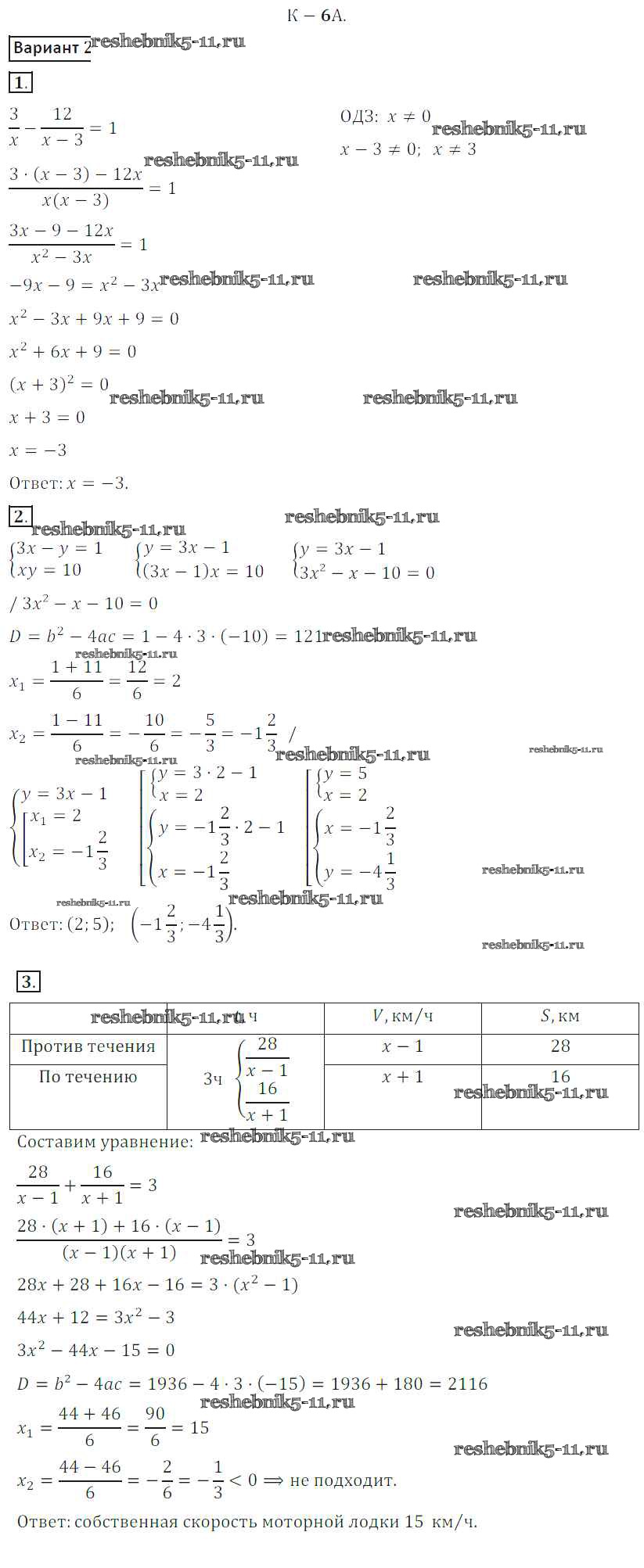 Решебник 1 / контрольная работа / кр №6A / вариант 2