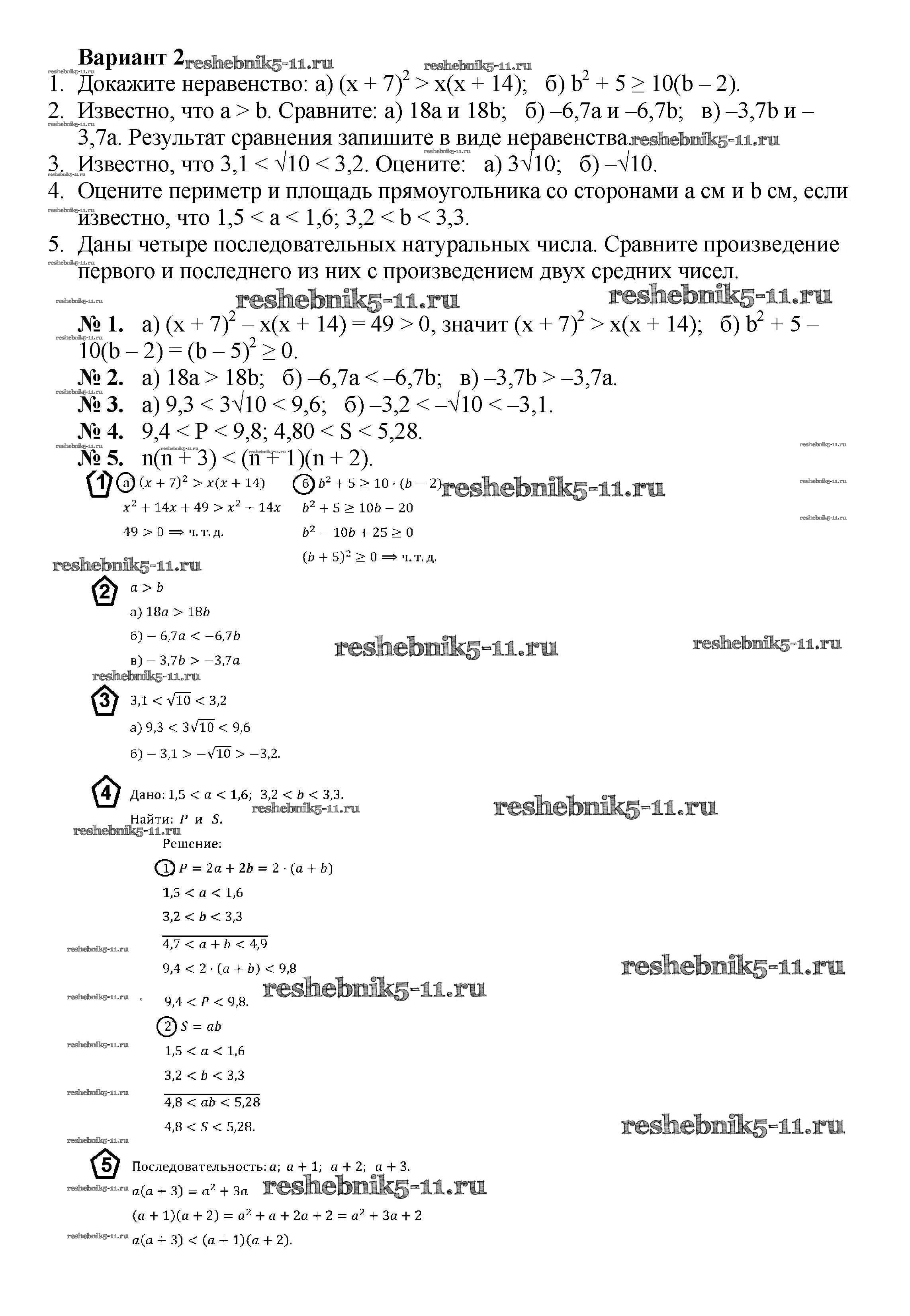 Готовая домашняя работа с ответами по Алгебре за 8 класс Жохов, Макарычев, Миндюк Дидактические материалы Просвещение 2014 ФГОС - КР №7 вариант 2