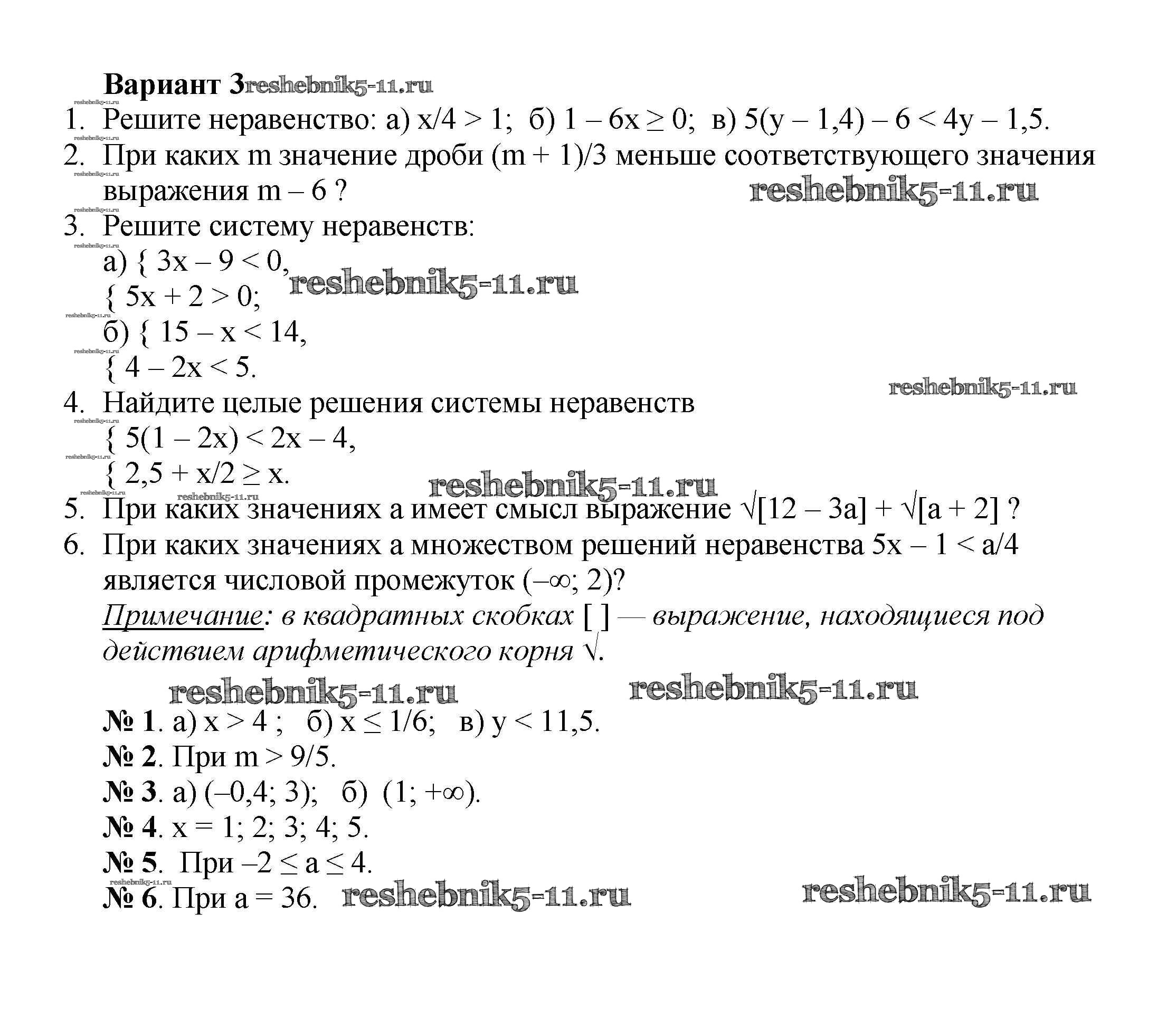 Готовая домашняя работа с ответами по Алгебре за 8 класс Жохов, Макарычев, Миндюк Дидактические материалы Просвещение 2014 ФГОС - КР №8 вариант 3