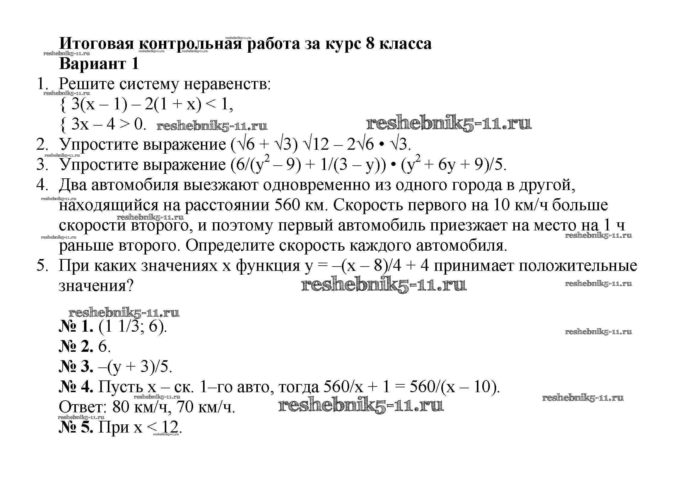 Решебник 1 / контрольная работа / кр №10 / вариант 1