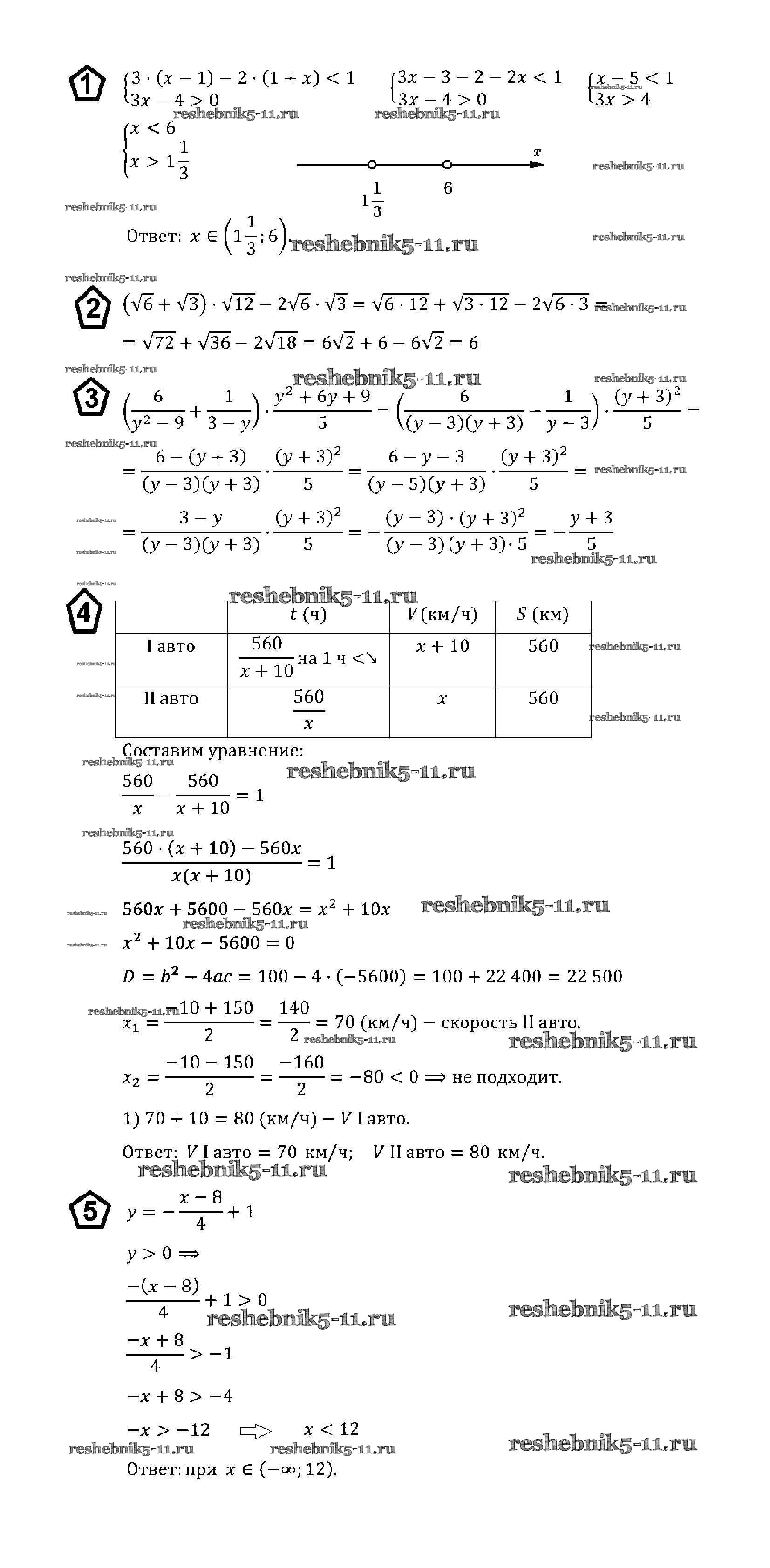 Готовая домашняя работа с ответами по Алгебре за 8 класс Жохов, Макарычев, Миндюк Дидактические материалы Просвещение 2014 ФГОС - КР №10 вариант 1