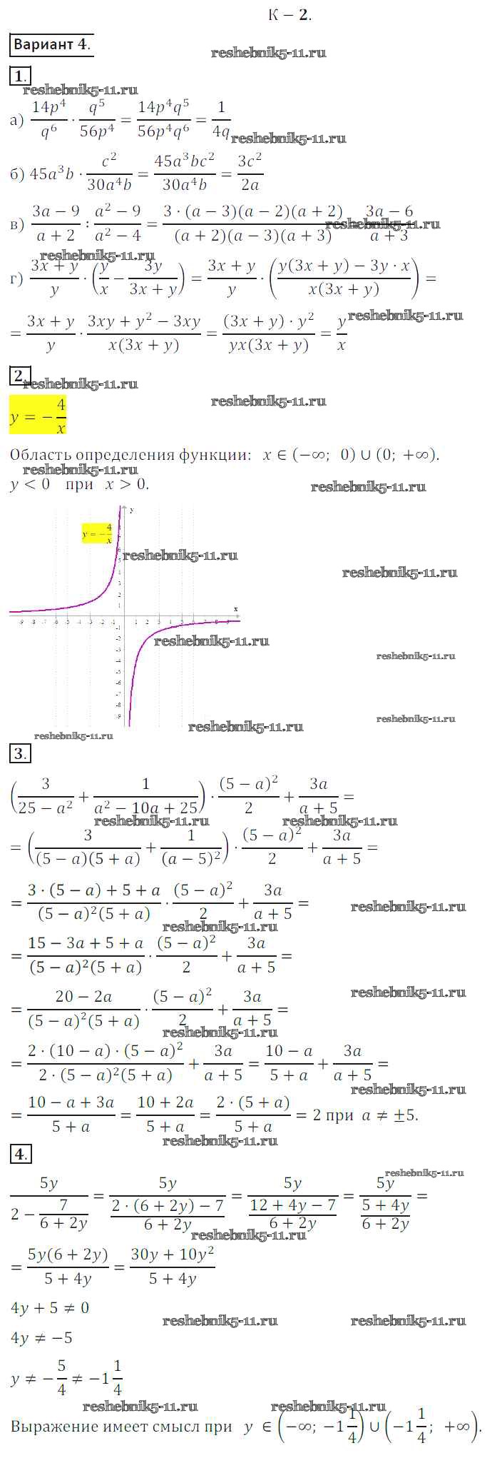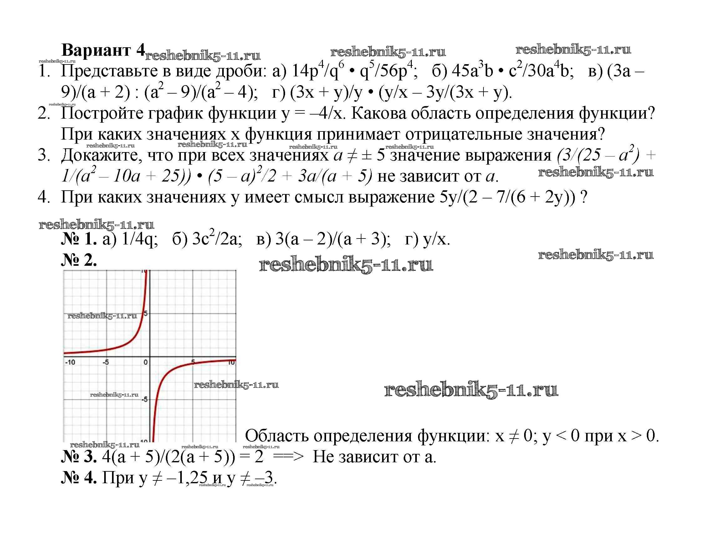 Готовая домашняя работа с ответами по Алгебре за 8 класс Жохов, Макарычев, Миндюк Дидактические материалы Просвещение 2014 ФГОС - КР №2 вариант 4
