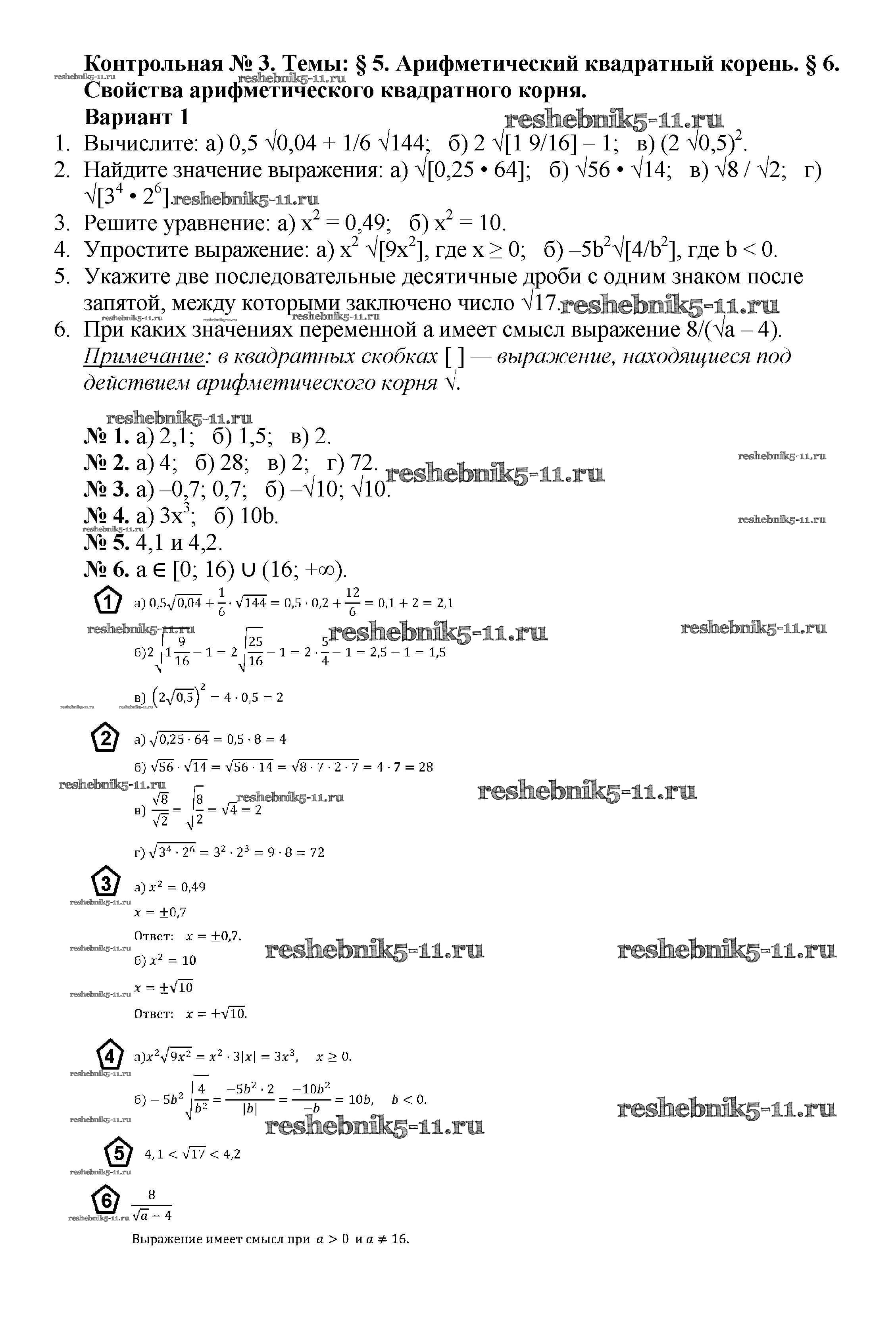 Готовая домашняя работа с ответами по Алгебре за 8 класс Жохов, Макарычев, Миндюк Дидактические материалы Просвещение 2014 ФГОС - КР №3 вариант 1