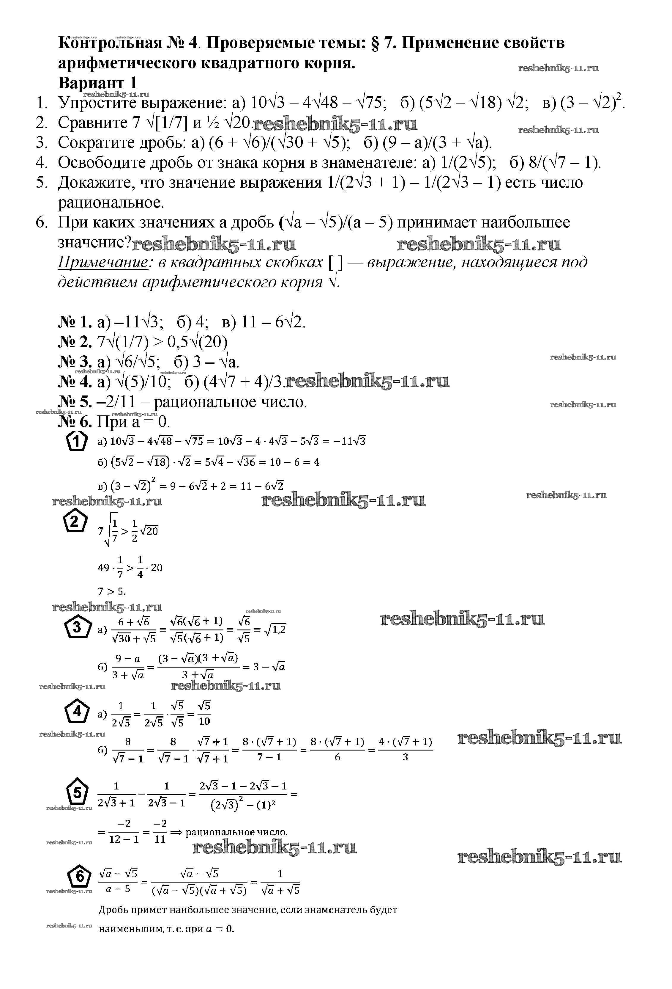 Готовая домашняя работа с ответами по Алгебре за 8 класс Жохов, Макарычев, Миндюк Дидактические материалы Просвещение 2014 ФГОС - КР №4 вариант 1