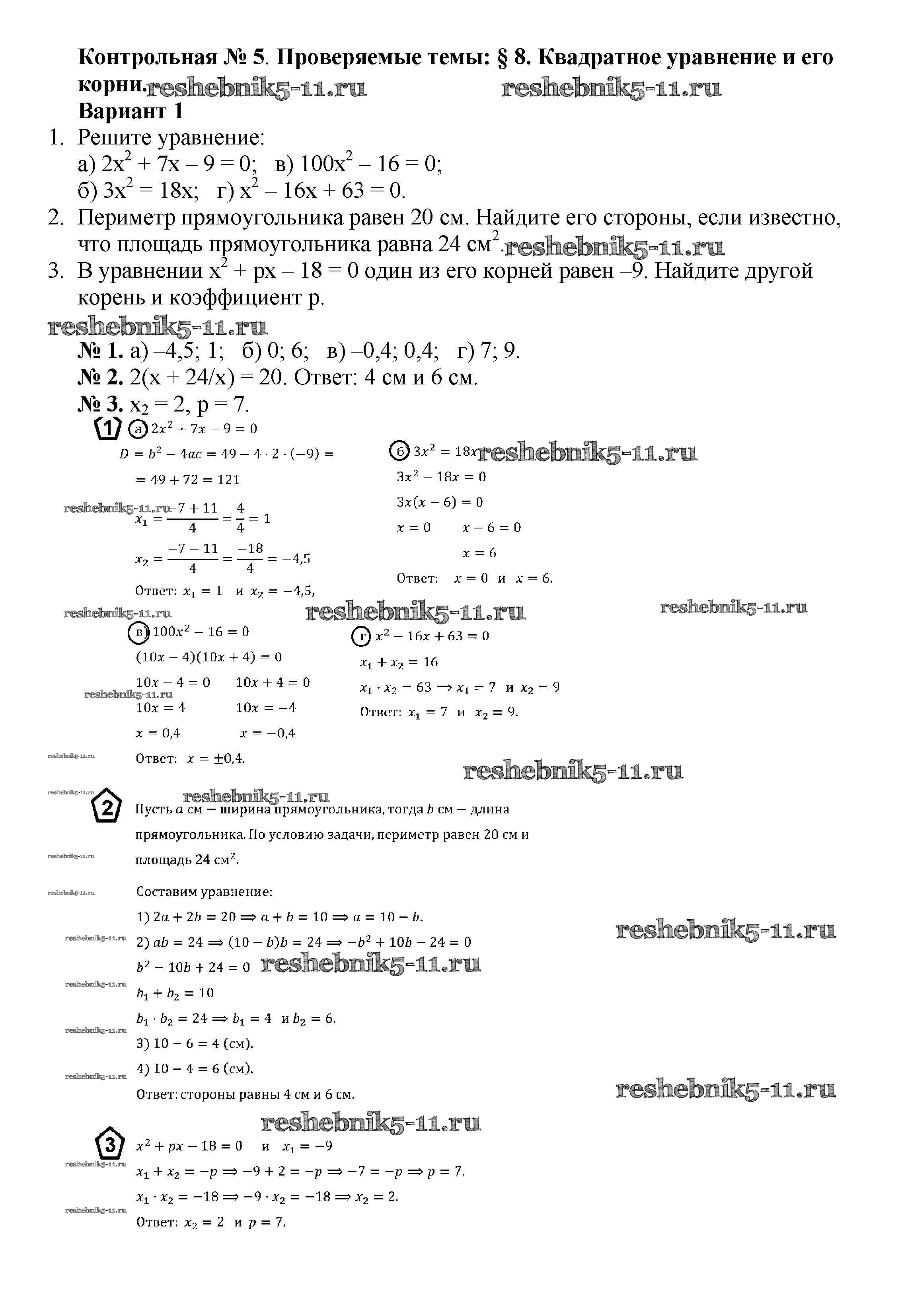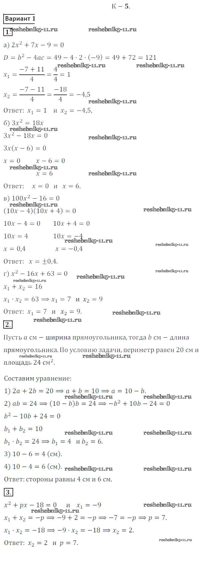 Решебник 1 / контрольная работа / кр №5 / вариант 1