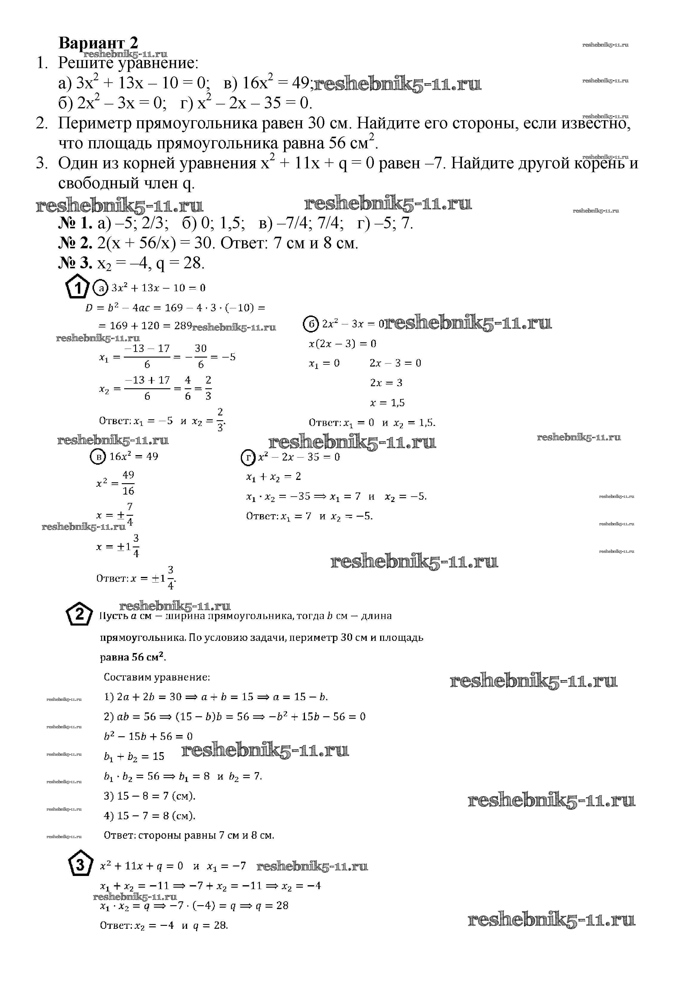 Готовая домашняя работа с ответами по Алгебре за 8 класс Жохов, Макарычев, Миндюк Дидактические материалы Просвещение 2014 ФГОС - КР №5 вариант 2