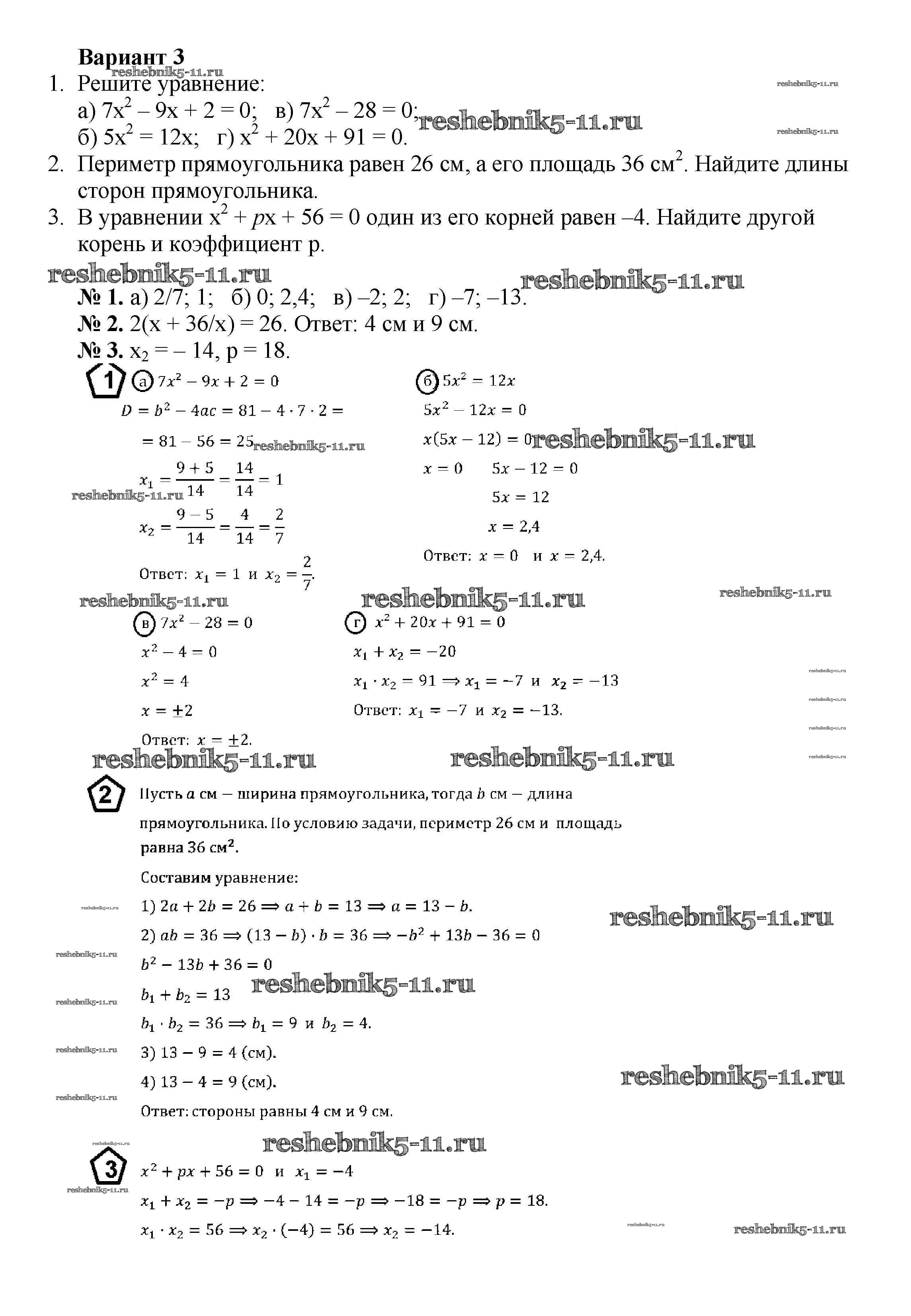 Готовая домашняя работа с ответами по Алгебре за 8 класс Жохов, Макарычев, Миндюк Дидактические материалы Просвещение 2014 ФГОС - КР №5 вариант 3