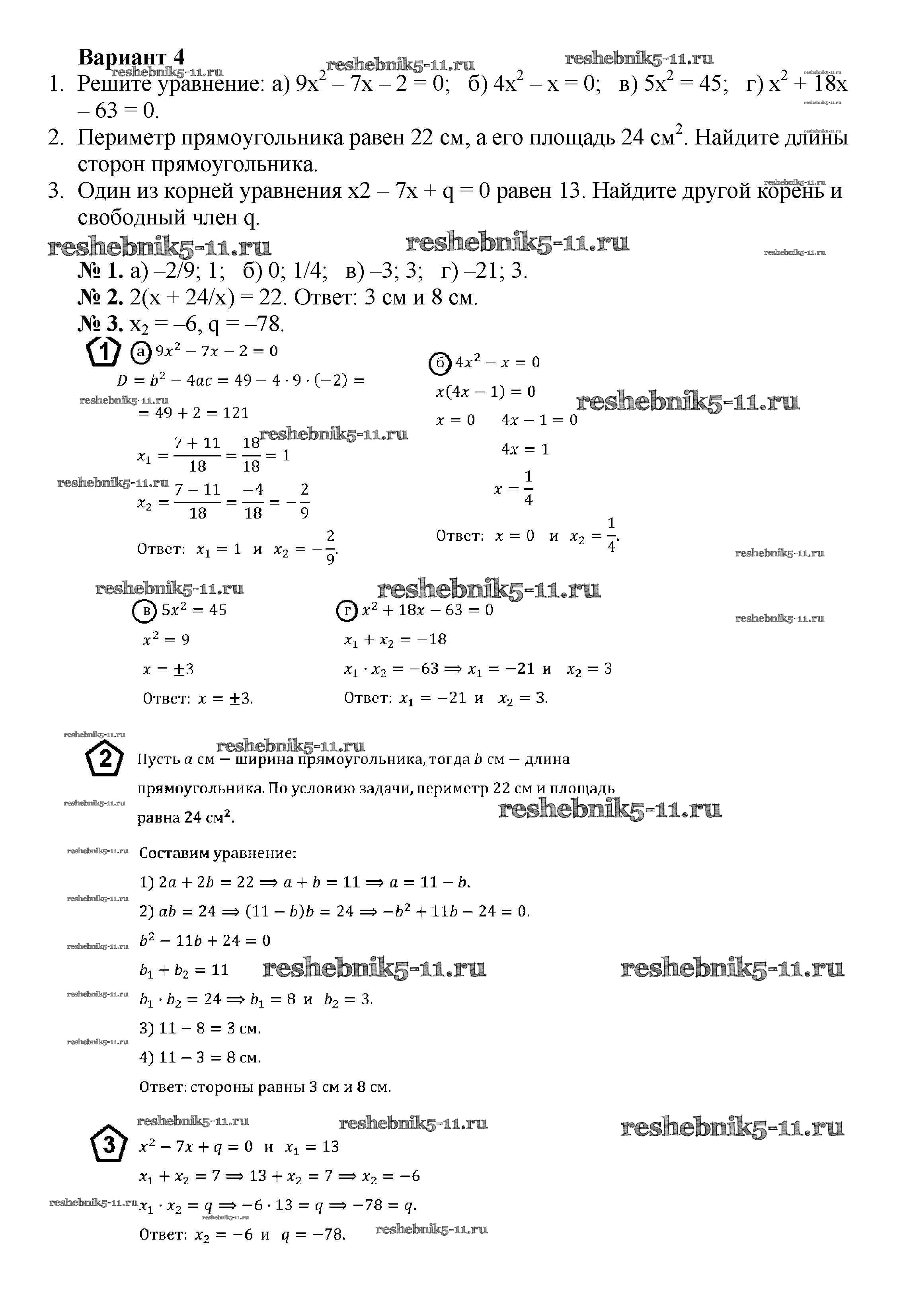 Готовая домашняя работа с ответами по Алгебре за 8 класс Жохов, Макарычев, Миндюк Дидактические материалы Просвещение 2014 ФГОС - КР №5 вариант 4
