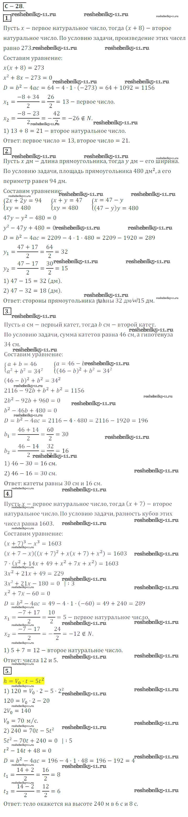 Готовая домашняя работа с ответами по Алгебре за 8 класс Жохов, Макарычев, Миндюк Дидактические материалы Просвещение 2014 ФГОС - Вариант 1 СР №28