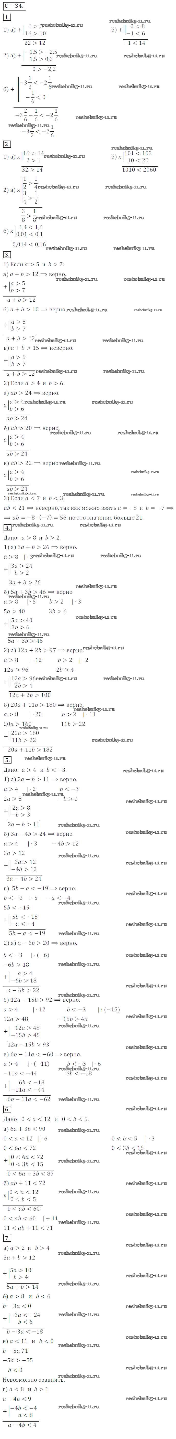 Готовая домашняя работа с ответами по Алгебре за 8 класс Жохов, Макарычев, Миндюк Дидактические материалы Просвещение 2014 ФГОС - Вариант 1 СР №34