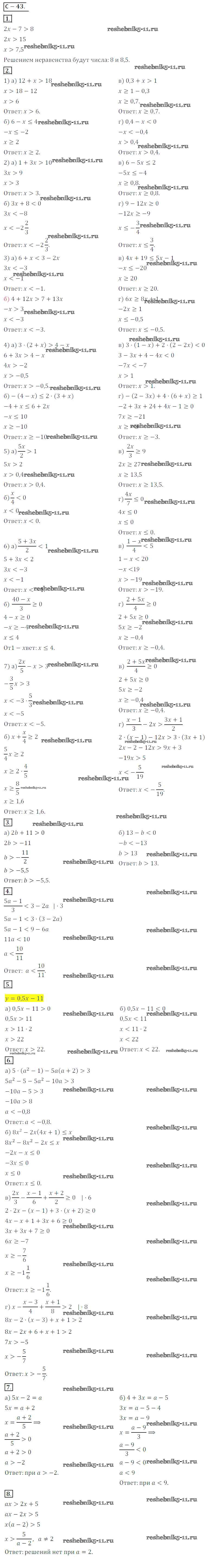 Готовая домашняя работа с ответами по Алгебре за 8 класс Жохов, Макарычев, Миндюк Дидактические материалы Просвещение 2014 ФГОС - Вариант 1 СР №43