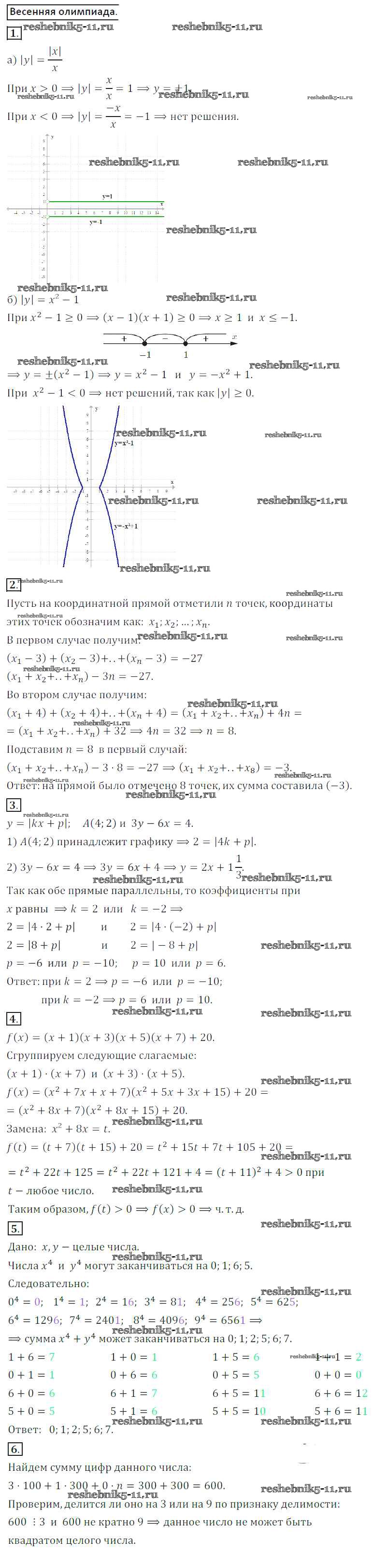 Готовая домашняя работа с ответами по Алгебре за 8 класс Жохов, Макарычев, Миндюк Дидактические материалы Просвещение 2014 ФГОС - Задания для школьных олимпиад весенняя