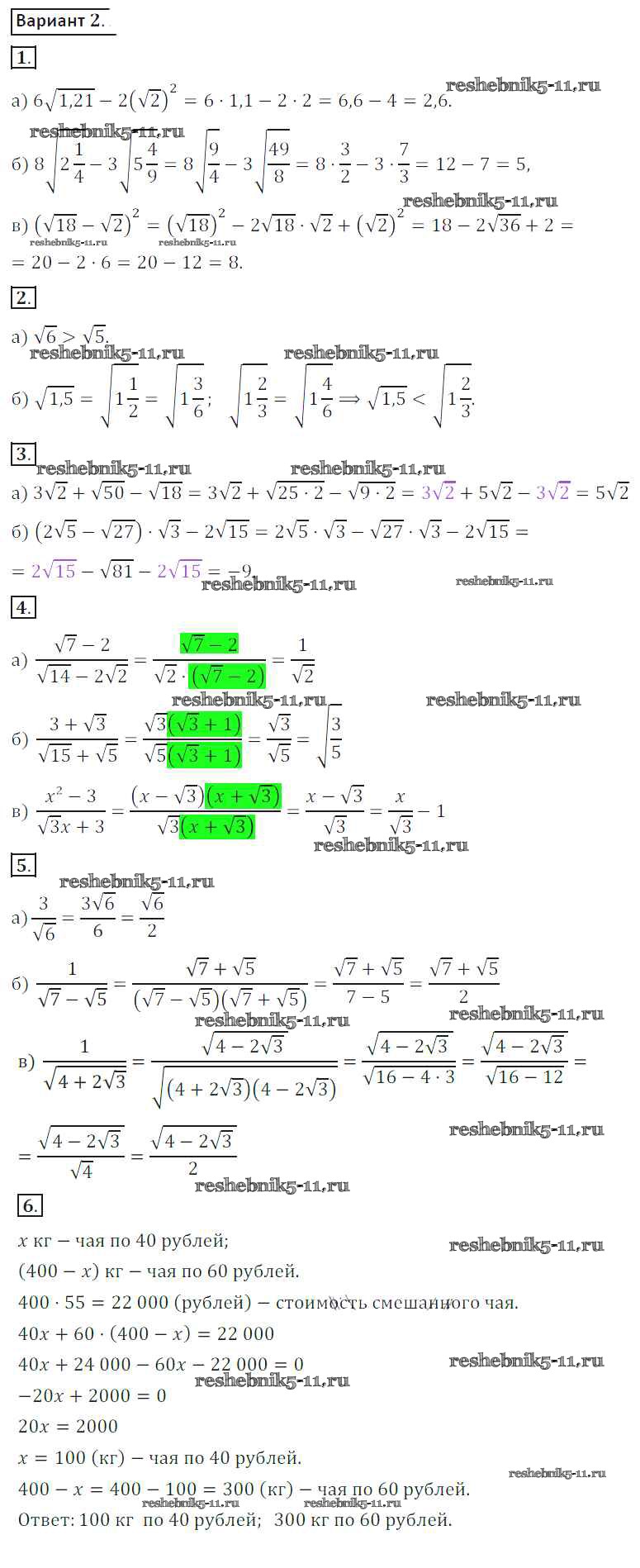 Готовая домашняя работа с ответами по Алгебре за 8 класс Потапов, Шевкин Дидактические материалы МГУ - школе Просвещение 2017 ФГОС - КР №2 вариант 2