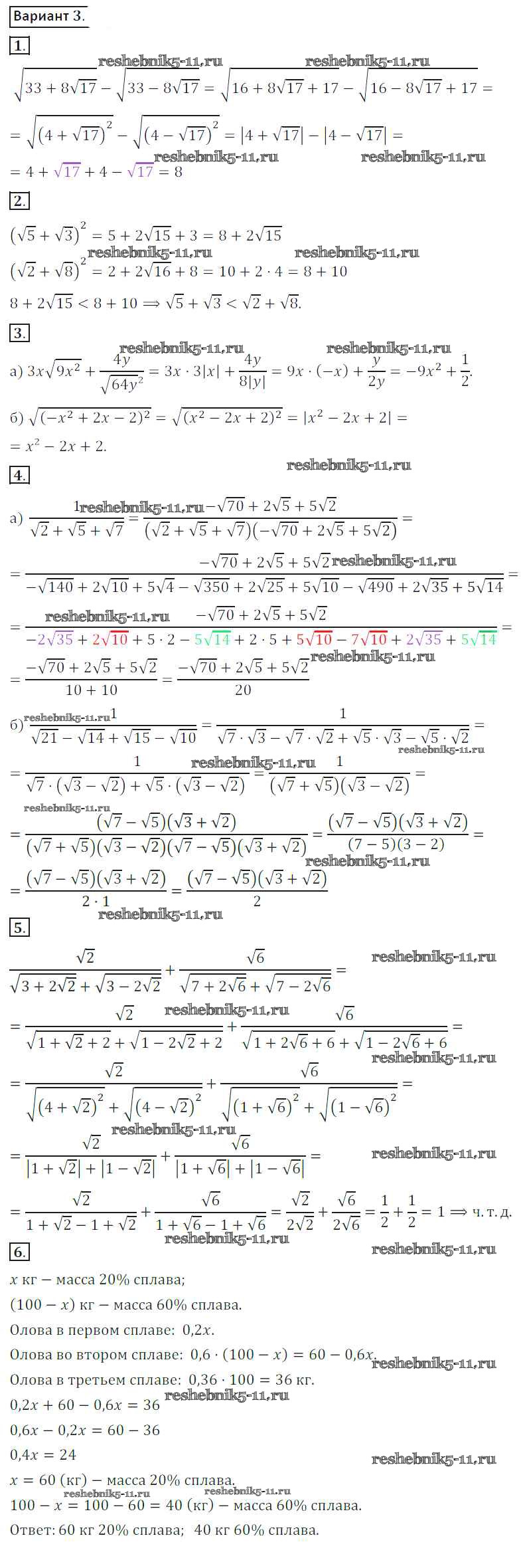 Готовая домашняя работа с ответами по Алгебре за 8 класс Потапов, Шевкин Дидактические материалы МГУ - школе Просвещение 2017 ФГОС - КР №2 вариант 3