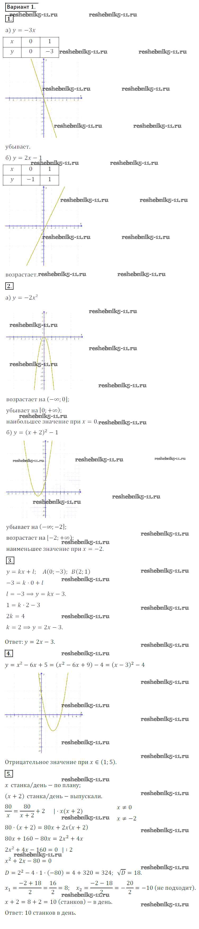 Готовая домашняя работа с ответами по Алгебре за 8 класс Потапов, Шевкин Дидактические материалы МГУ - школе Просвещение 2017 ФГОС - КР №5 вариант 1