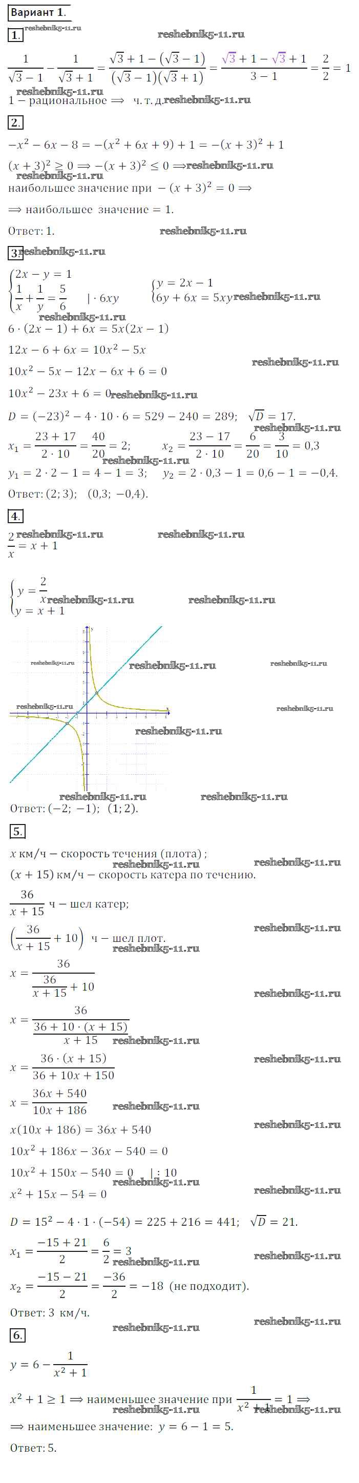 Готовая домашняя работа с ответами по Алгебре за 8 класс Потапов, Шевкин Дидактические материалы МГУ - школе Просвещение 2017 ФГОС - КР №7 вариант 1