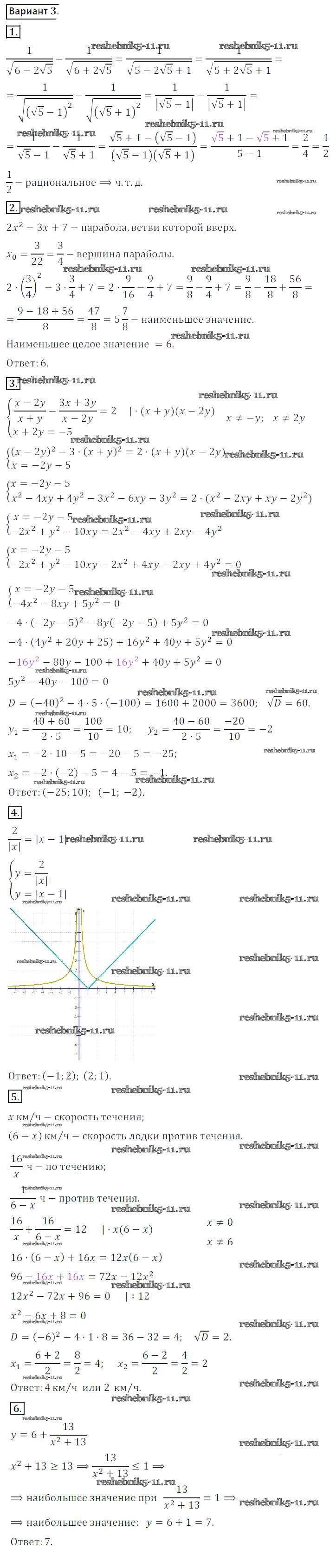 Готовая домашняя работа с ответами по Алгебре за 8 класс Потапов, Шевкин Дидактические материалы МГУ - школе Просвещение 2017 ФГОС - КР №7 вариант 3