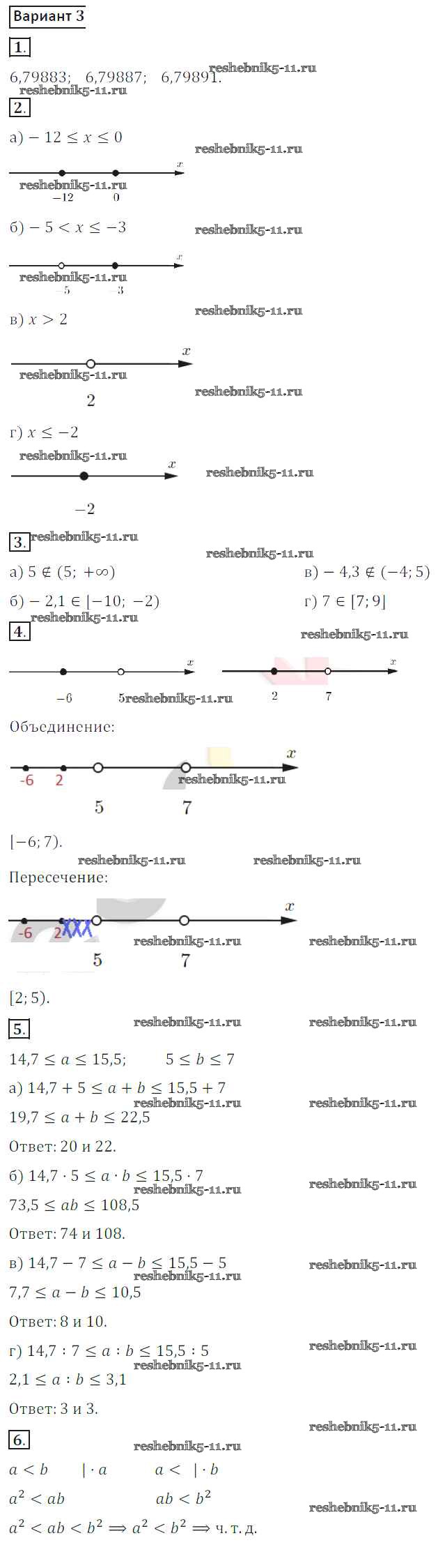 Готовая домашняя работа с ответами по Алгебре за 8 класс Потапов, Шевкин Дидактические материалы МГУ - школе Просвещение 2017 ФГОС - СР №1. Числовые неравенства. Числовые промежутки вариант 3