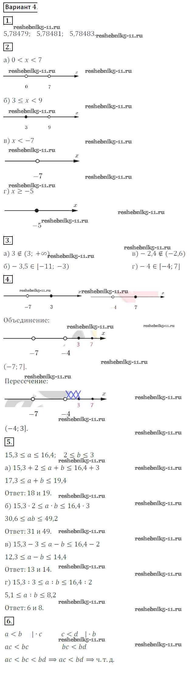 Готовая домашняя работа с ответами по Алгебре за 8 класс Потапов, Шевкин Дидактические материалы МГУ - школе Просвещение 2017 ФГОС - СР №1. Числовые неравенства. Числовые промежутки вариант 4