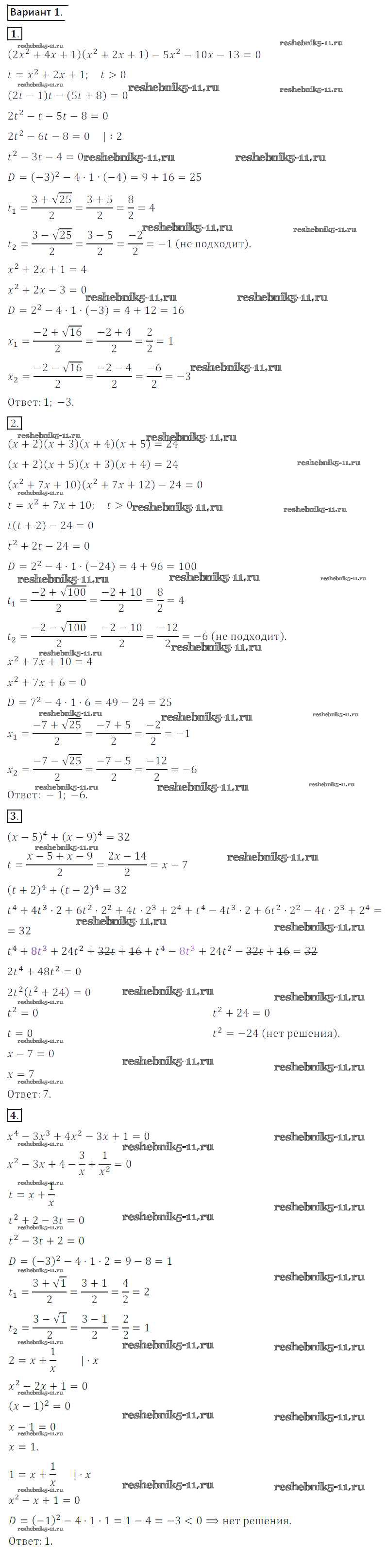 Готовая домашняя работа с ответами по Алгебре за 8 класс Потапов, Шевкин Дидактические материалы МГУ - школе Просвещение 2017 ФГОС - СР №10. Замена неизвестного при решении рациональных уравнений вариант 1