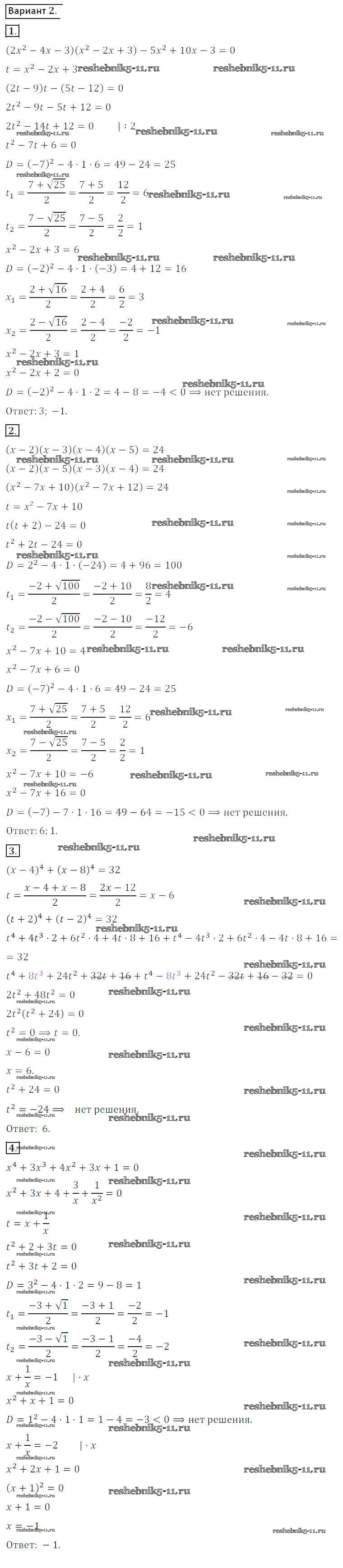 Готовая домашняя работа с ответами по Алгебре за 8 класс Потапов, Шевкин Дидактические материалы МГУ - школе Просвещение 2017 ФГОС - СР №10. Замена неизвестного при решении рациональных уравнений вариант 2
