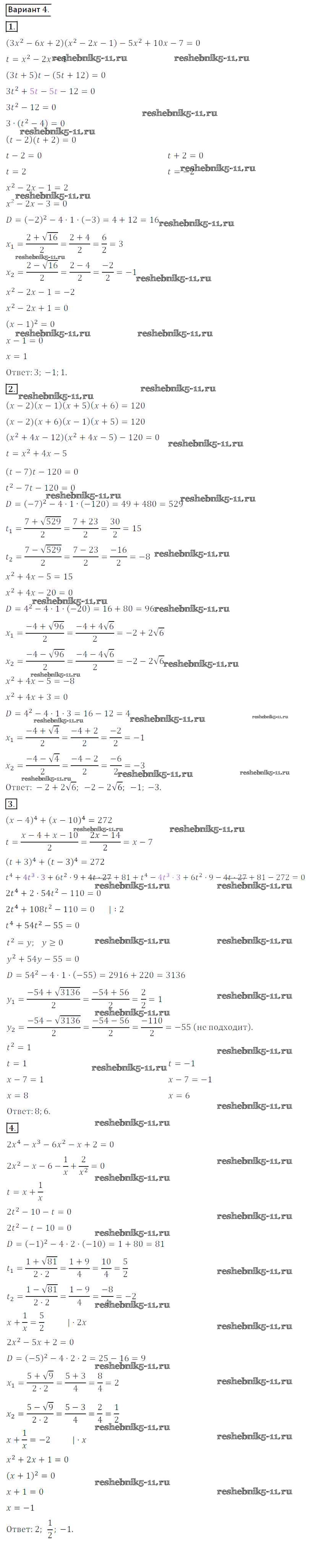 Готовая домашняя работа с ответами по Алгебре за 8 класс Потапов, Шевкин Дидактические материалы МГУ - школе Просвещение 2017 ФГОС - СР №10. Замена неизвестного при решении рациональных уравнений вариант 4