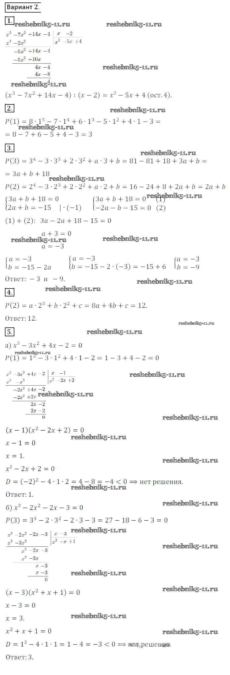 Готовая домашняя работа с ответами по Алгебре за 8 класс Потапов, Шевкин Дидактические материалы МГУ - школе Просвещение 2017 ФГОС - СР №11. Делимость многочленов вариант 2