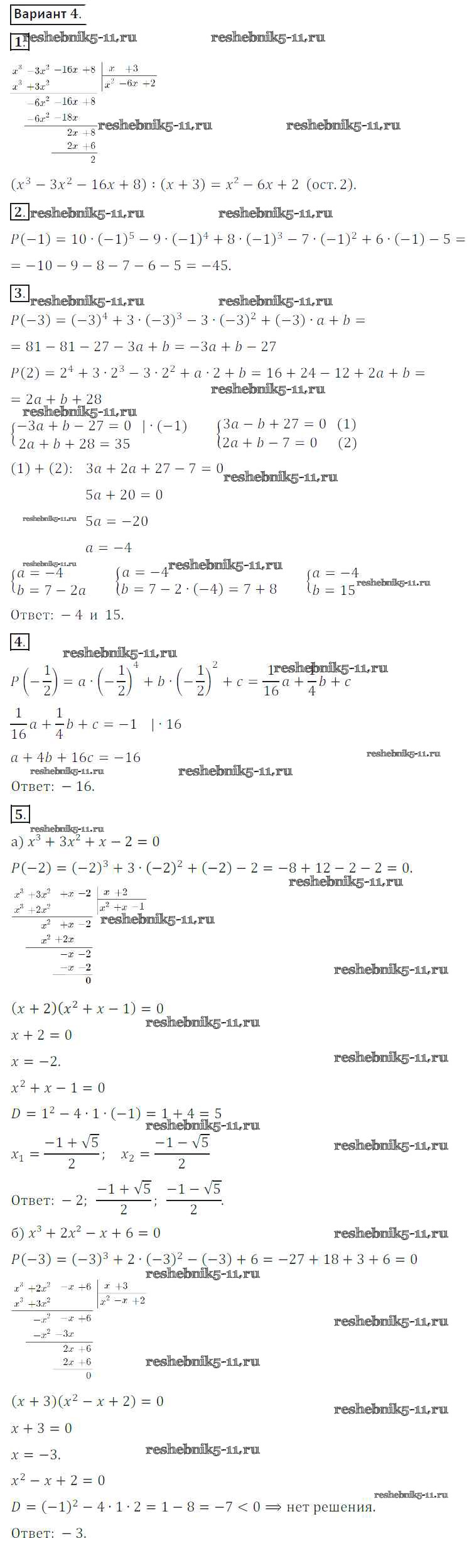 Готовая домашняя работа с ответами по Алгебре за 8 класс Потапов, Шевкин Дидактические материалы МГУ - школе Просвещение 2017 ФГОС - СР №11. Делимость многочленов вариант 4