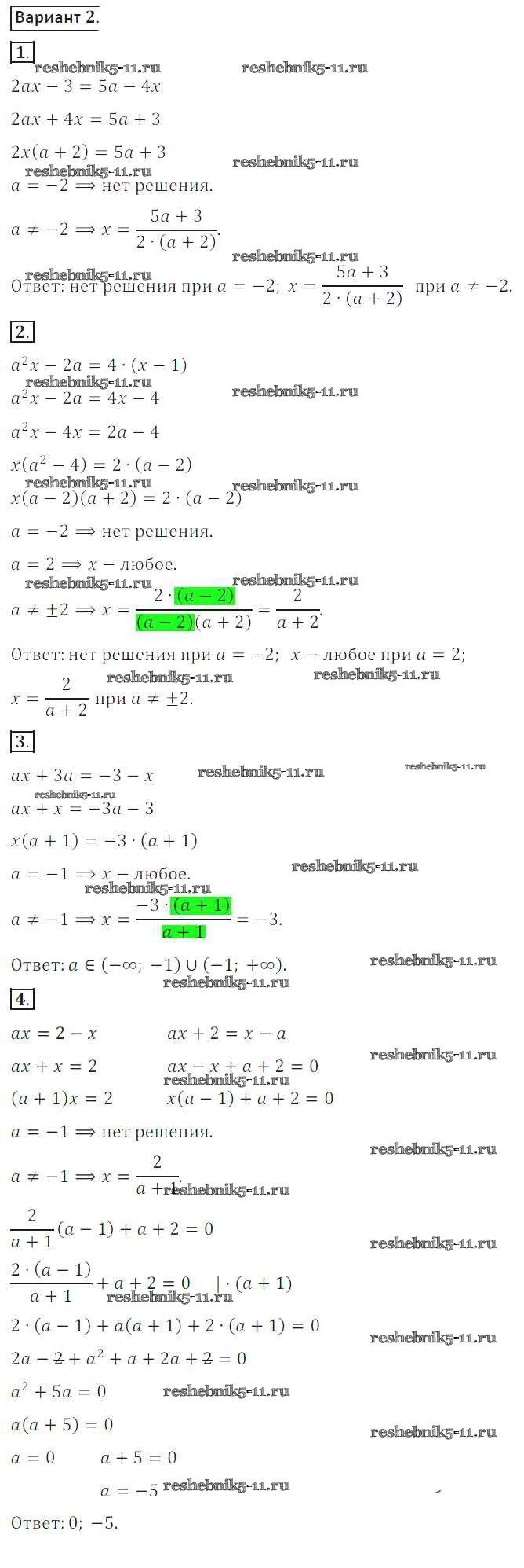 Готовая домашняя работа с ответами по Алгебре за 8 класс Потапов, Шевкин Дидактические материалы МГУ - школе Просвещение 2017 ФГОС - СР №12. Линейные уравнения с параметром вариант 2