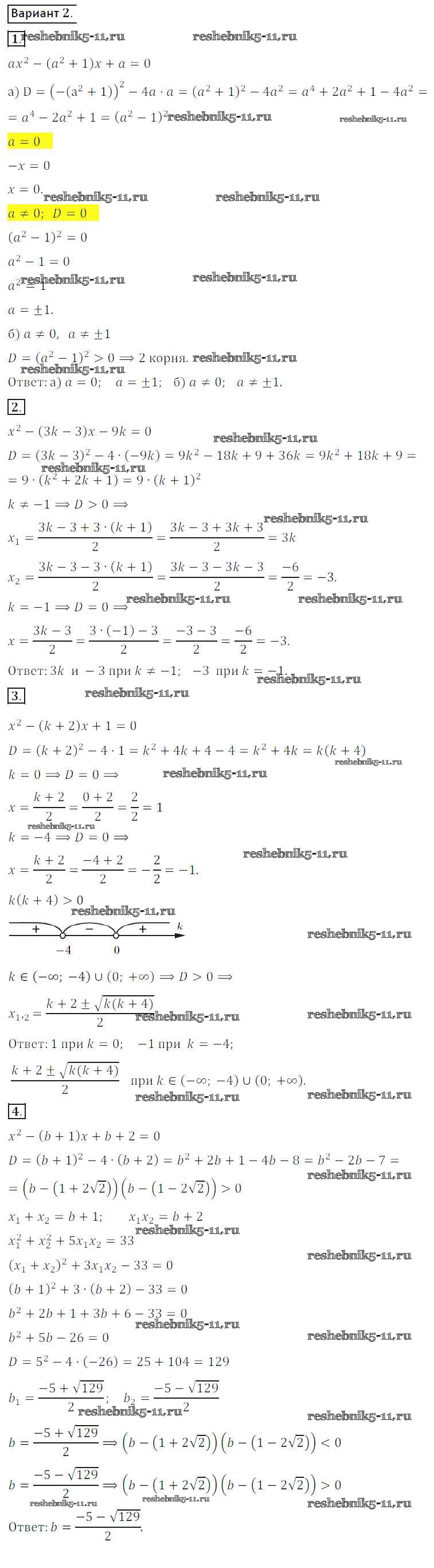 Готовая домашняя работа с ответами по Алгебре за 8 класс Потапов, Шевкин Дидактические материалы МГУ - школе Просвещение 2017 ФГОС - СР №13. Квадратные уравнения с параметром вариант 2