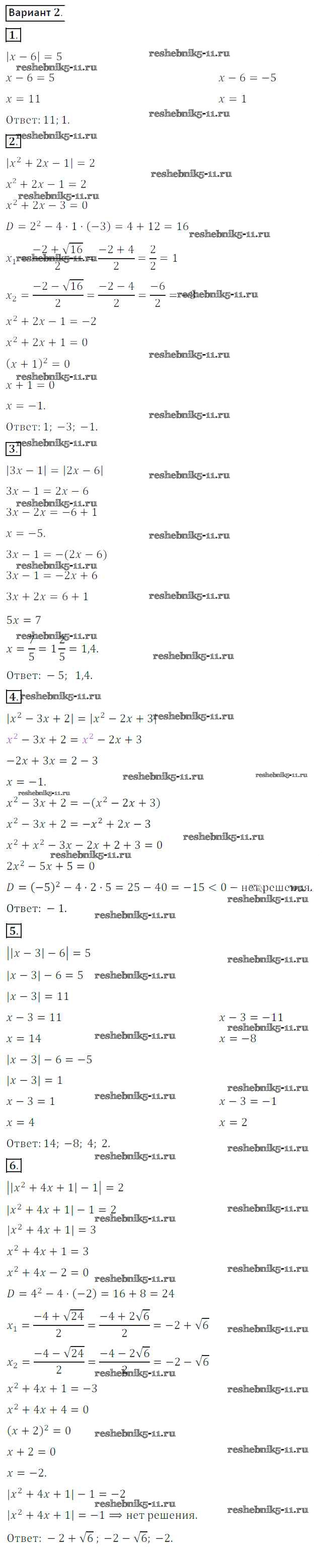 Готовая домашняя работа с ответами по Алгебре за 8 класс Потапов, Шевкин Дидактические материалы МГУ - школе Просвещение 2017 ФГОС - СР №14. Уравнения, содержащие модули вариант 2