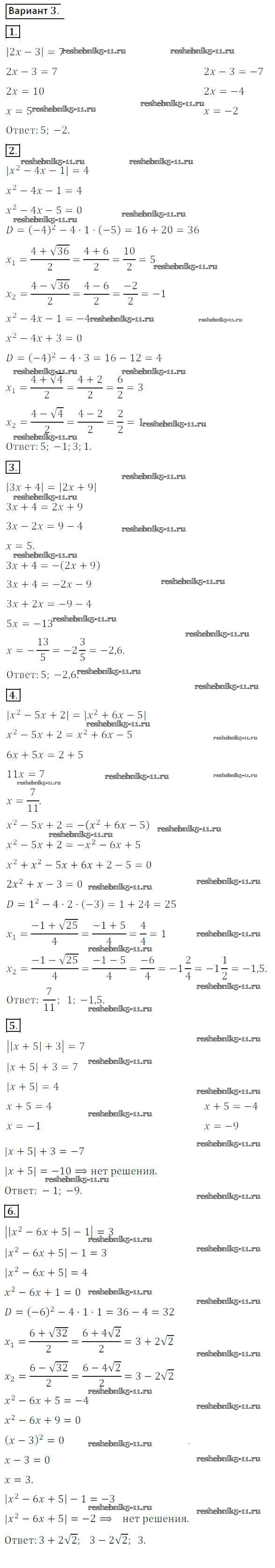 Готовая домашняя работа с ответами по Алгебре за 8 класс Потапов, Шевкин Дидактические материалы МГУ - школе Просвещение 2017 ФГОС - СР №14. Уравнения, содержащие модули вариант 3