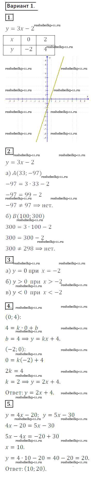 Готовая домашняя работа с ответами по Алгебре за 8 класс Потапов, Шевкин Дидактические материалы МГУ - школе Просвещение 2017 ФГОС - СР №15. Линейная функция вариант 1