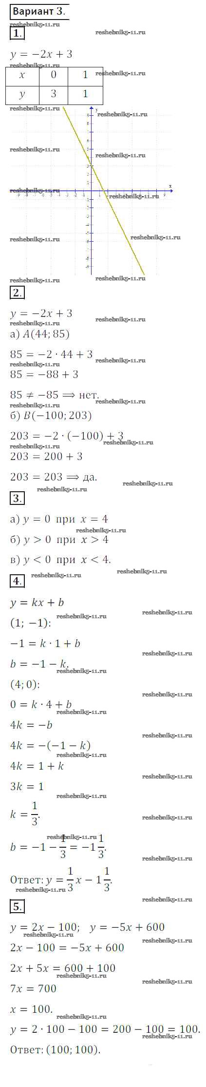 Готовая домашняя работа с ответами по Алгебре за 8 класс Потапов, Шевкин Дидактические материалы МГУ - школе Просвещение 2017 ФГОС - СР №15. Линейная функция вариант 3