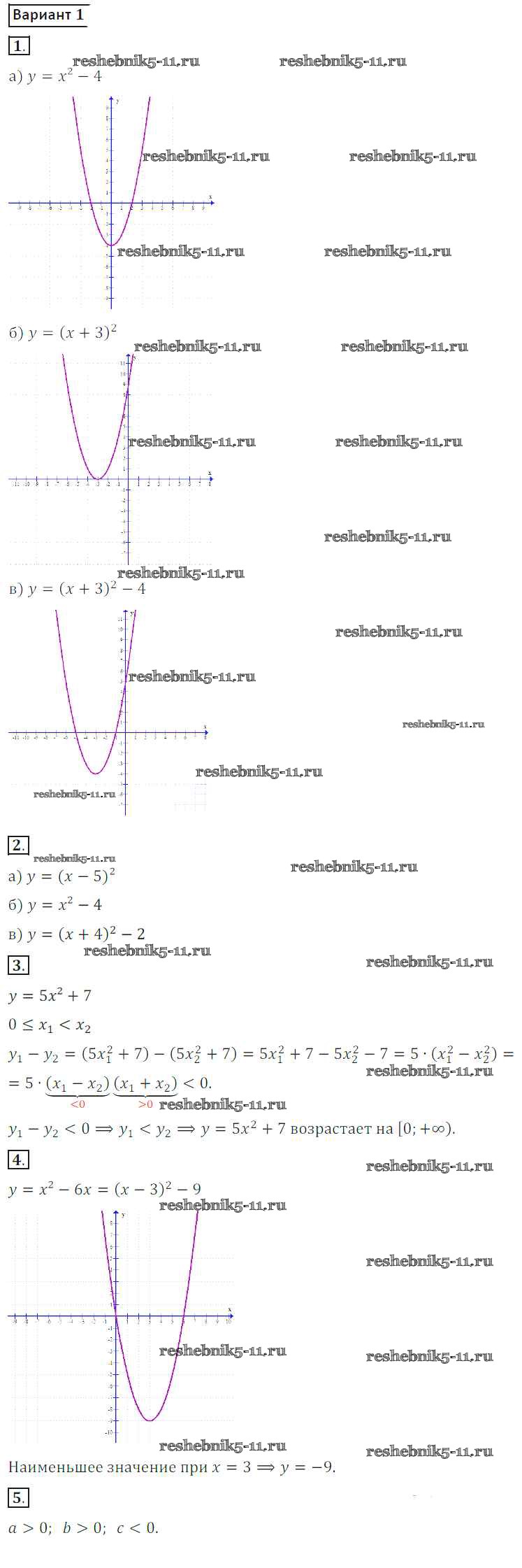 Готовая домашняя работа с ответами по Алгебре за 8 класс Потапов, Шевкин Дидактические материалы МГУ - школе Просвещение 2017 ФГОС - СР №17. Квадратичная функция вариант 1