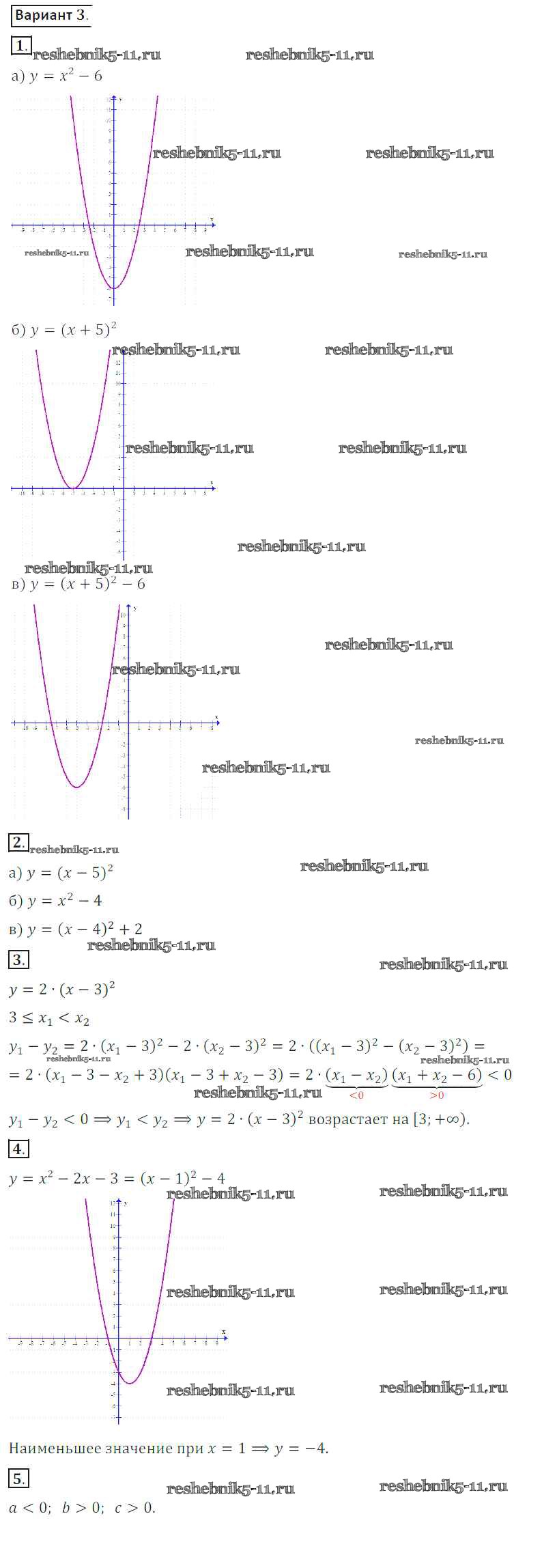 Готовая домашняя работа с ответами по Алгебре за 8 класс Потапов, Шевкин Дидактические материалы МГУ - школе Просвещение 2017 ФГОС - СР №17. Квадратичная функция вариант 3