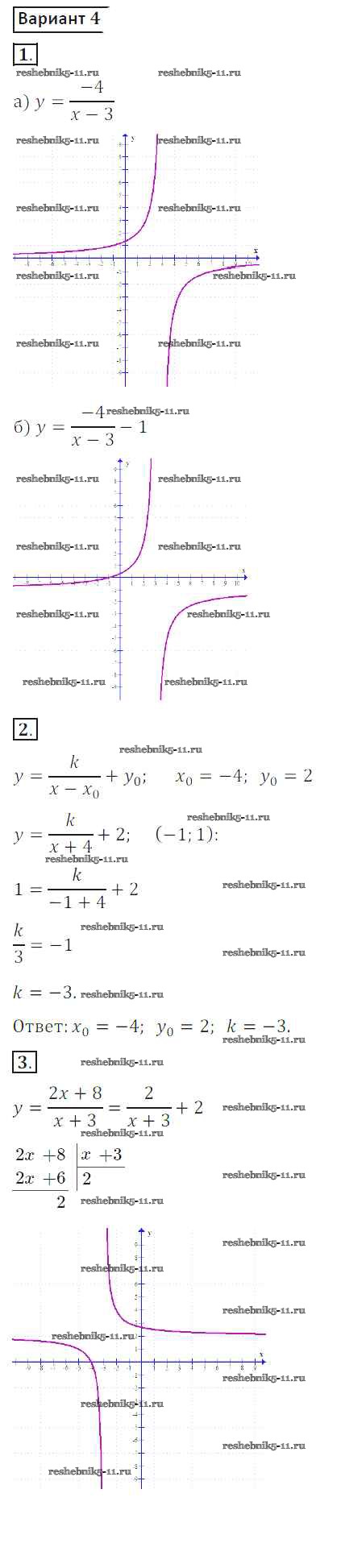 Готовая домашняя работа с ответами по Алгебре за 8 класс Потапов, Шевкин Дидактические материалы МГУ - школе Просвещение 2017 ФГОС - СР №18. Функция у = k:х-х₀ + y₀ вариант 4