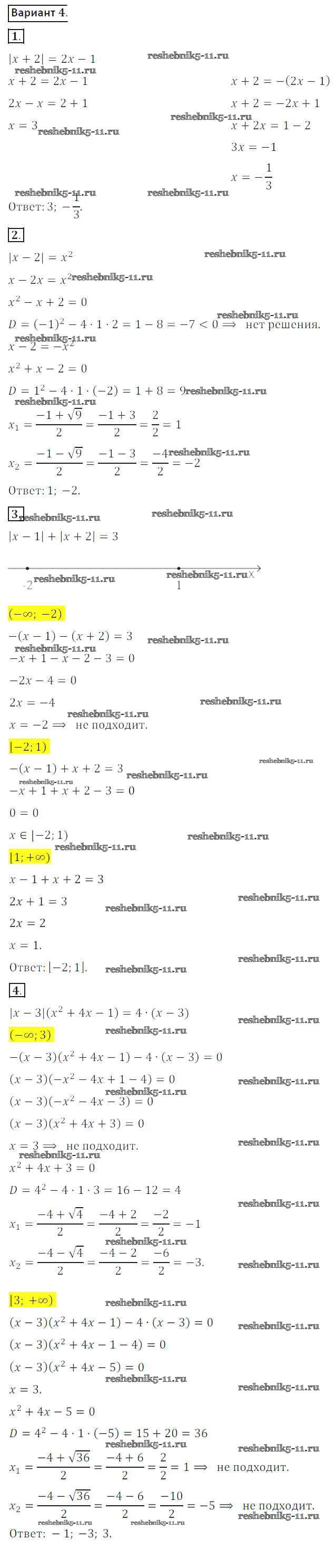 Готовая домашняя работа с ответами по Алгебре за 8 класс Потапов, Шевкин Дидактические материалы МГУ - школе Просвещение 2017 ФГОС - СР №19. Уравнения, содержащие модули вариант 4