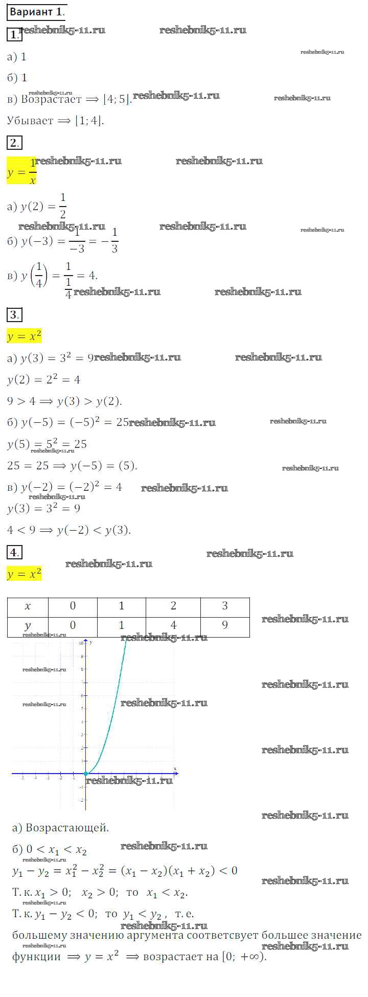 Готовая домашняя работа с ответами по Алгебре за 8 класс Потапов, Шевкин Дидактические материалы МГУ - школе Просвещение 2017 ФГОС - СР №2. Функция. График функции вариант 1