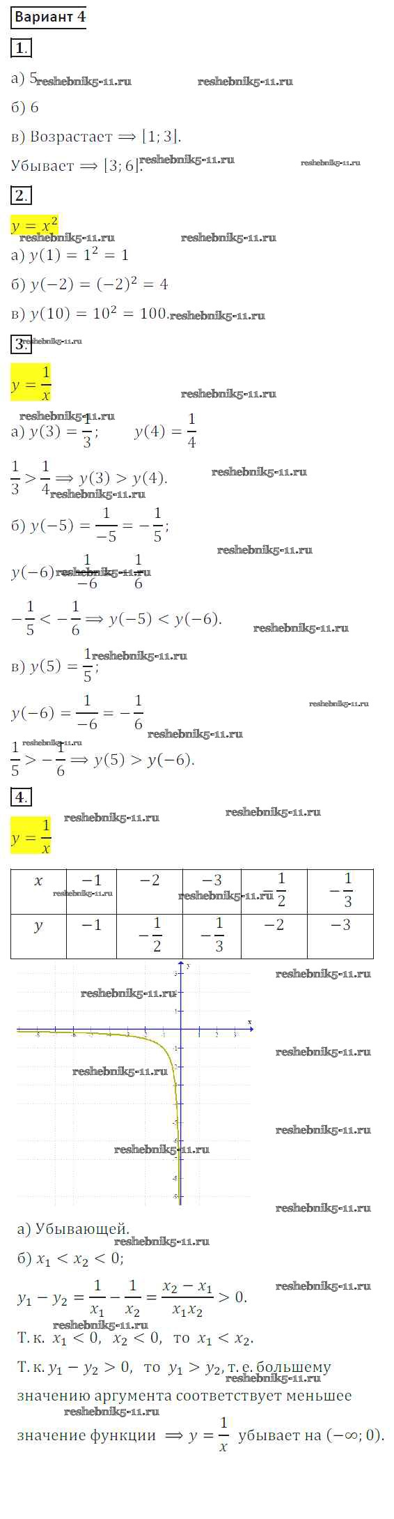 Готовая домашняя работа с ответами по Алгебре за 8 класс Потапов, Шевкин Дидактические материалы МГУ - школе Просвещение 2017 ФГОС - СР №2. Функция. График функции вариант 4