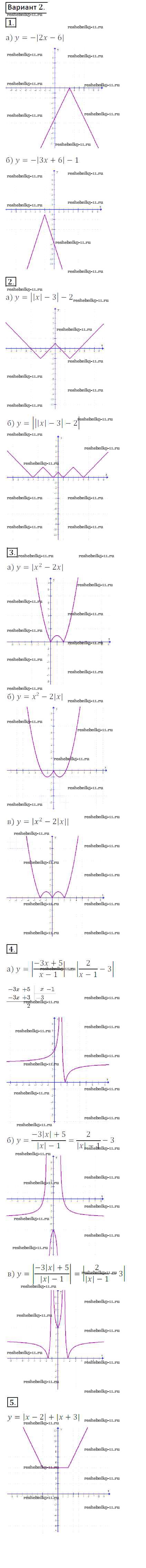 Готовая домашняя работа с ответами по Алгебре за 8 класс Потапов, Шевкин Дидактические материалы МГУ - школе Просвещение 2017 ФГОС - СР №20. Графики функций, содержащих модули вариант 2