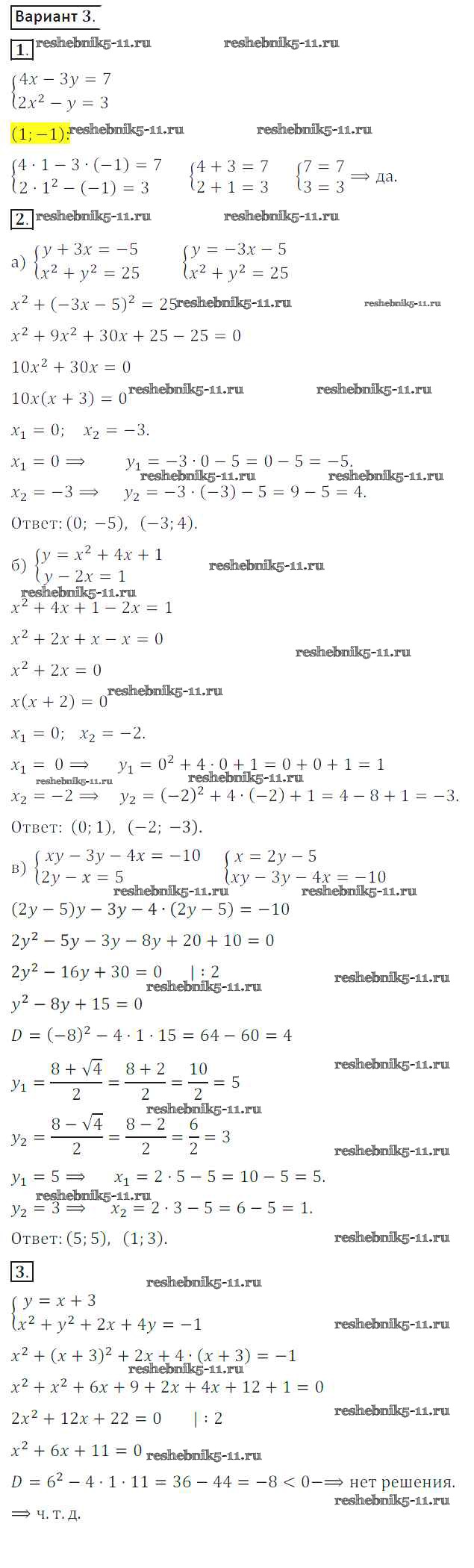 Готовая домашняя работа с ответами по Алгебре за 8 класс Потапов, Шевкин Дидактические материалы МГУ - школе Просвещение 2017 ФГОС - СР №21. Системы уравнений первой и второй степени вариант 3