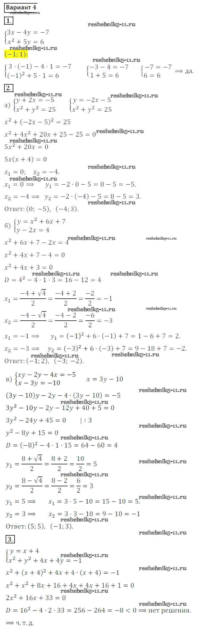 Готовая домашняя работа с ответами по Алгебре за 8 класс Потапов, Шевкин Дидактические материалы МГУ - школе Просвещение 2017 ФГОС - СР №21. Системы уравнений первой и второй степени вариант 4