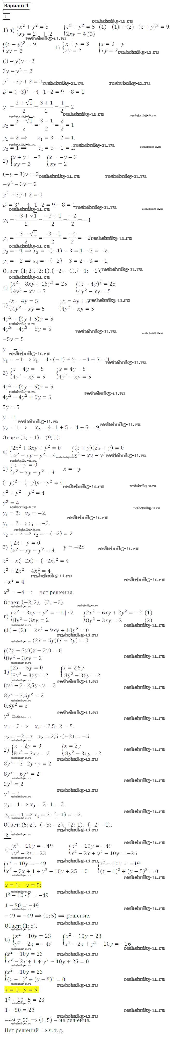 Готовая домашняя работа с ответами по Алгебре за 8 класс Потапов, Шевкин Дидактические материалы МГУ - школе Просвещение 2017 ФГОС - СР №22. Системы уравнений второй степени вариант 1