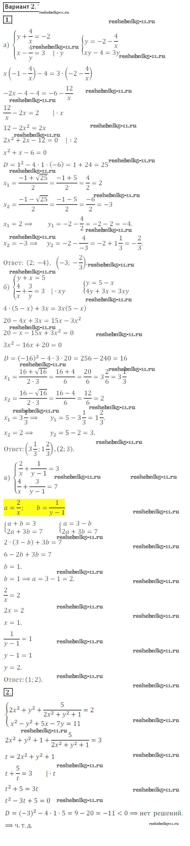 Готовая домашняя работа с ответами по Алгебре за 8 класс Потапов, Шевкин Дидактические материалы МГУ - школе Просвещение 2017 ФГОС - СР №23. Системы рациональных уравнений вариант 2
