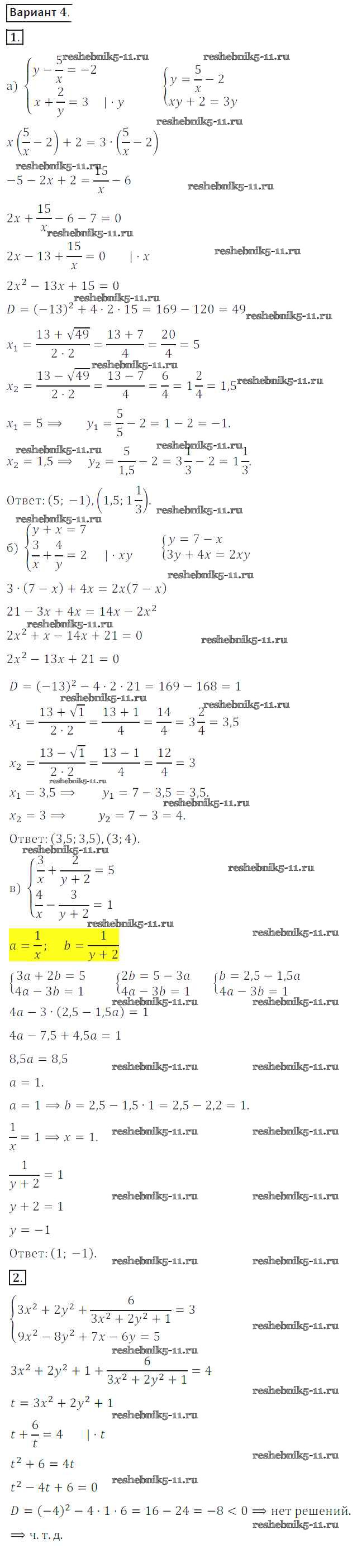 Готовая домашняя работа с ответами по Алгебре за 8 класс Потапов, Шевкин Дидактические материалы МГУ - школе Просвещение 2017 ФГОС - СР №23. Системы рациональных уравнений вариант 4