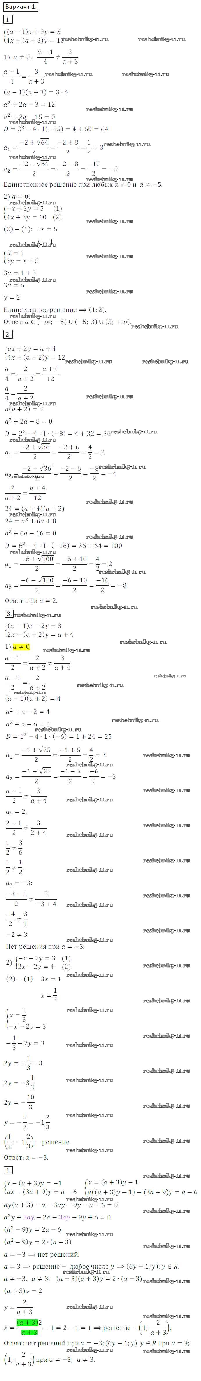 Готовая домашняя работа с ответами по Алгебре за 8 класс Потапов, Шевкин Дидактические материалы МГУ - школе Просвещение 2017 ФГОС - СР №24. Системы линейных уравнений с параметром вариант 1